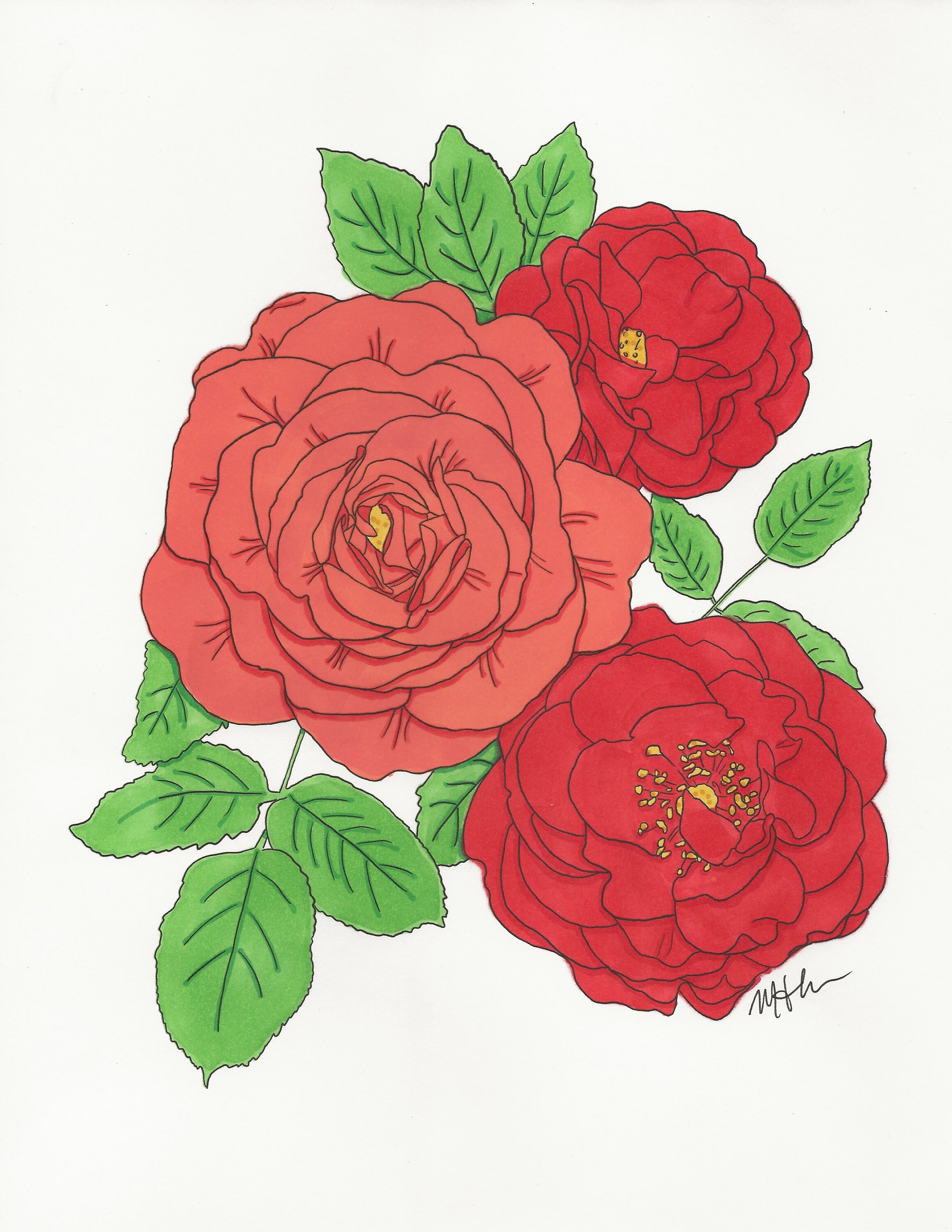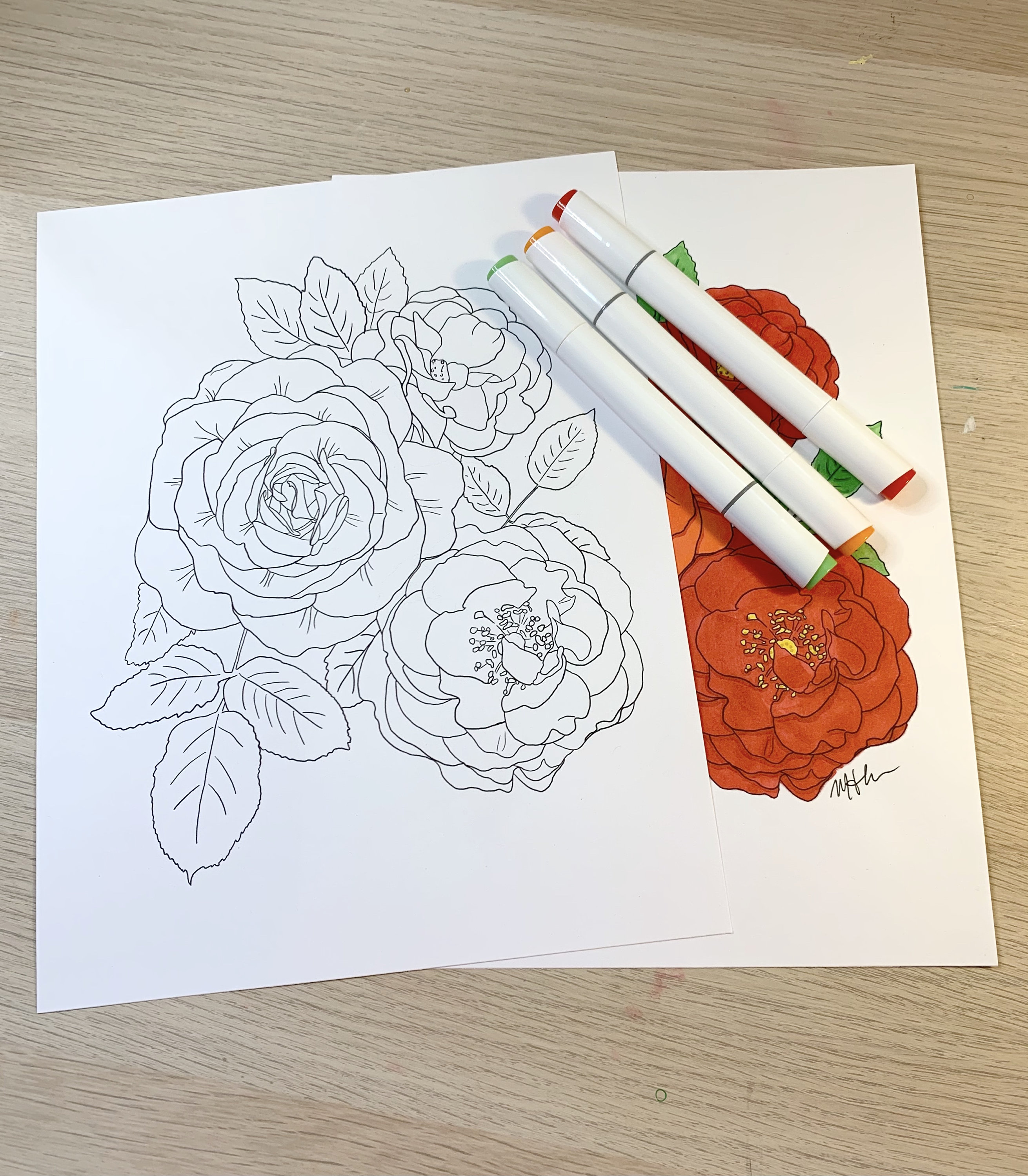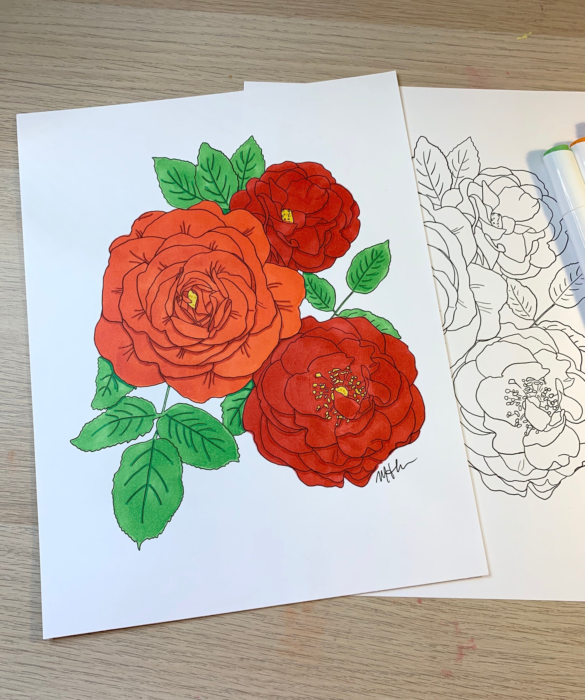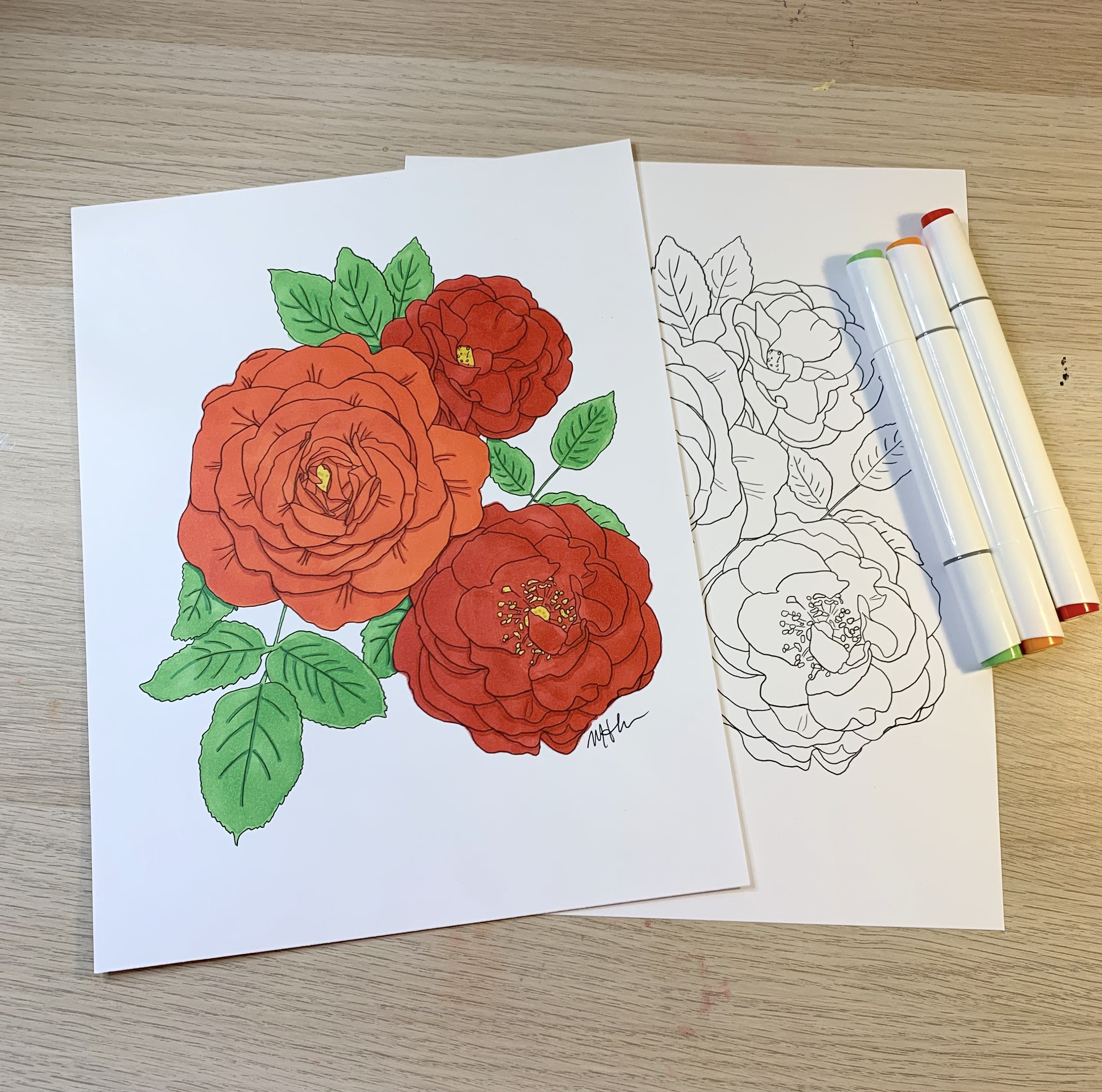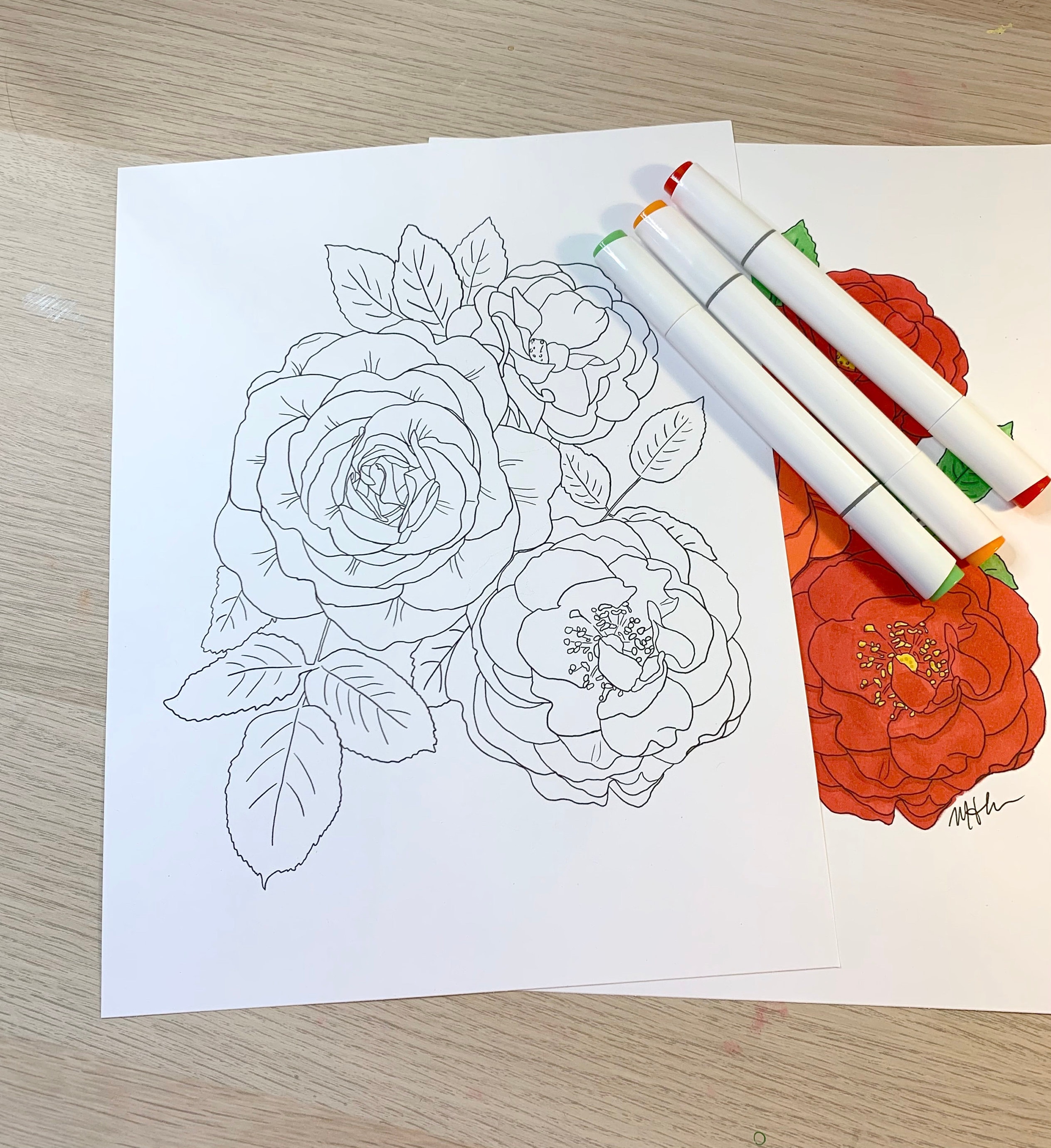 Rose Coloring Page Digital Download PDF JPG, for kids teens adults