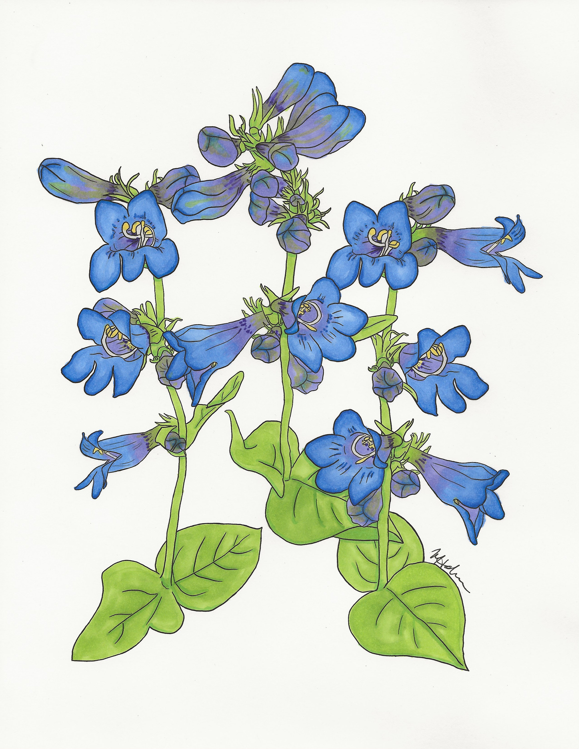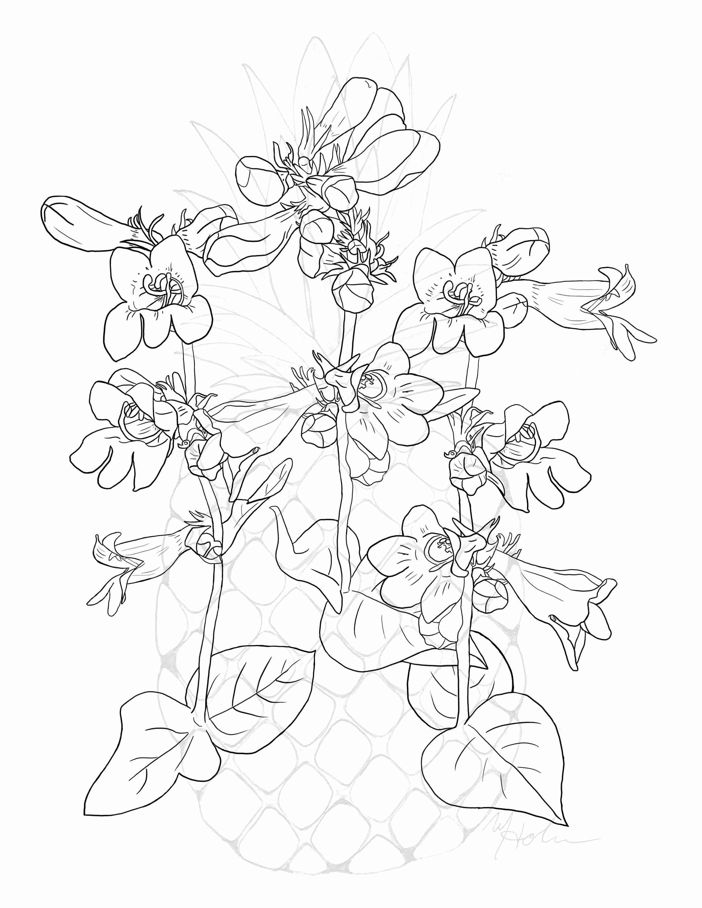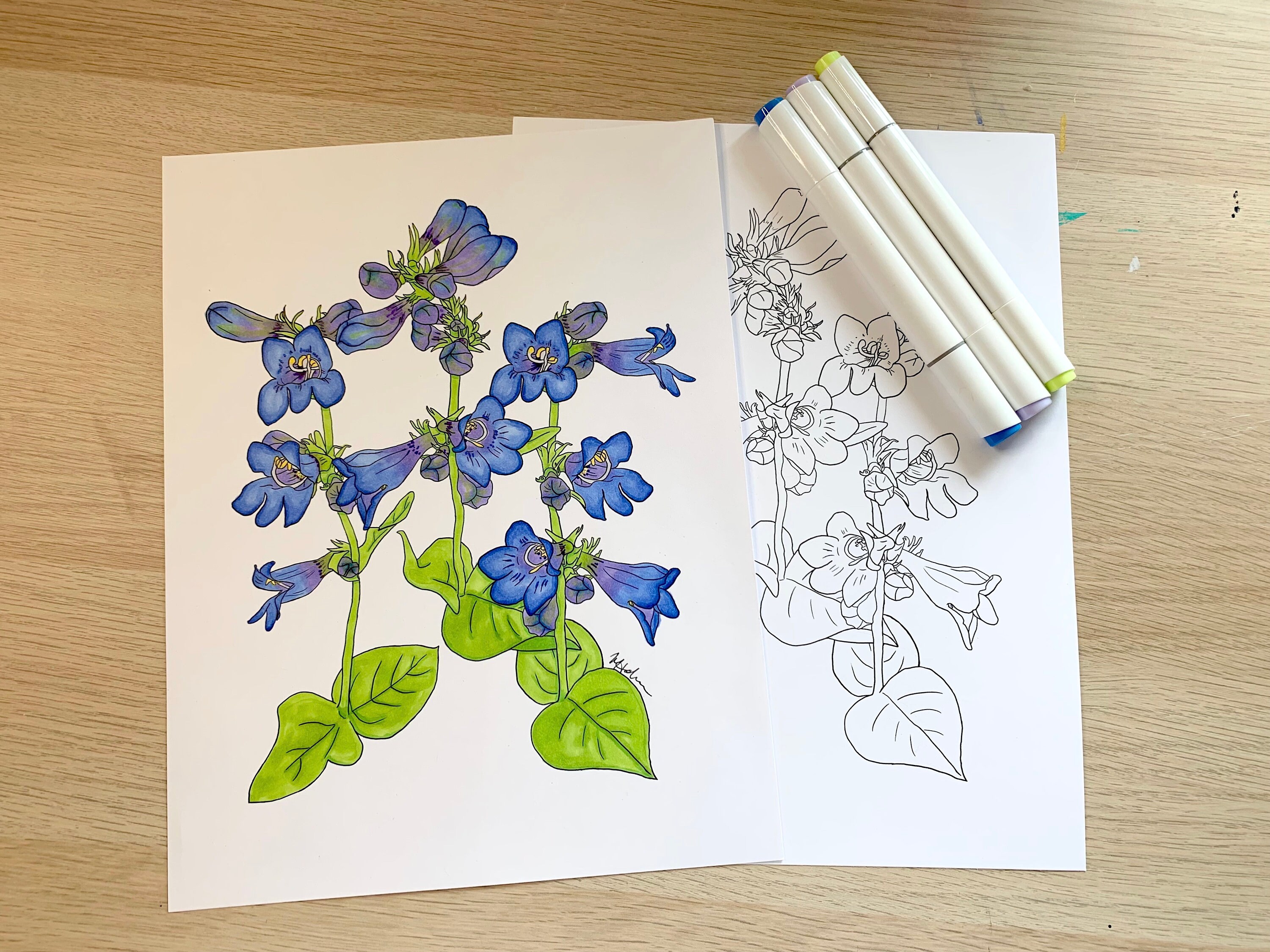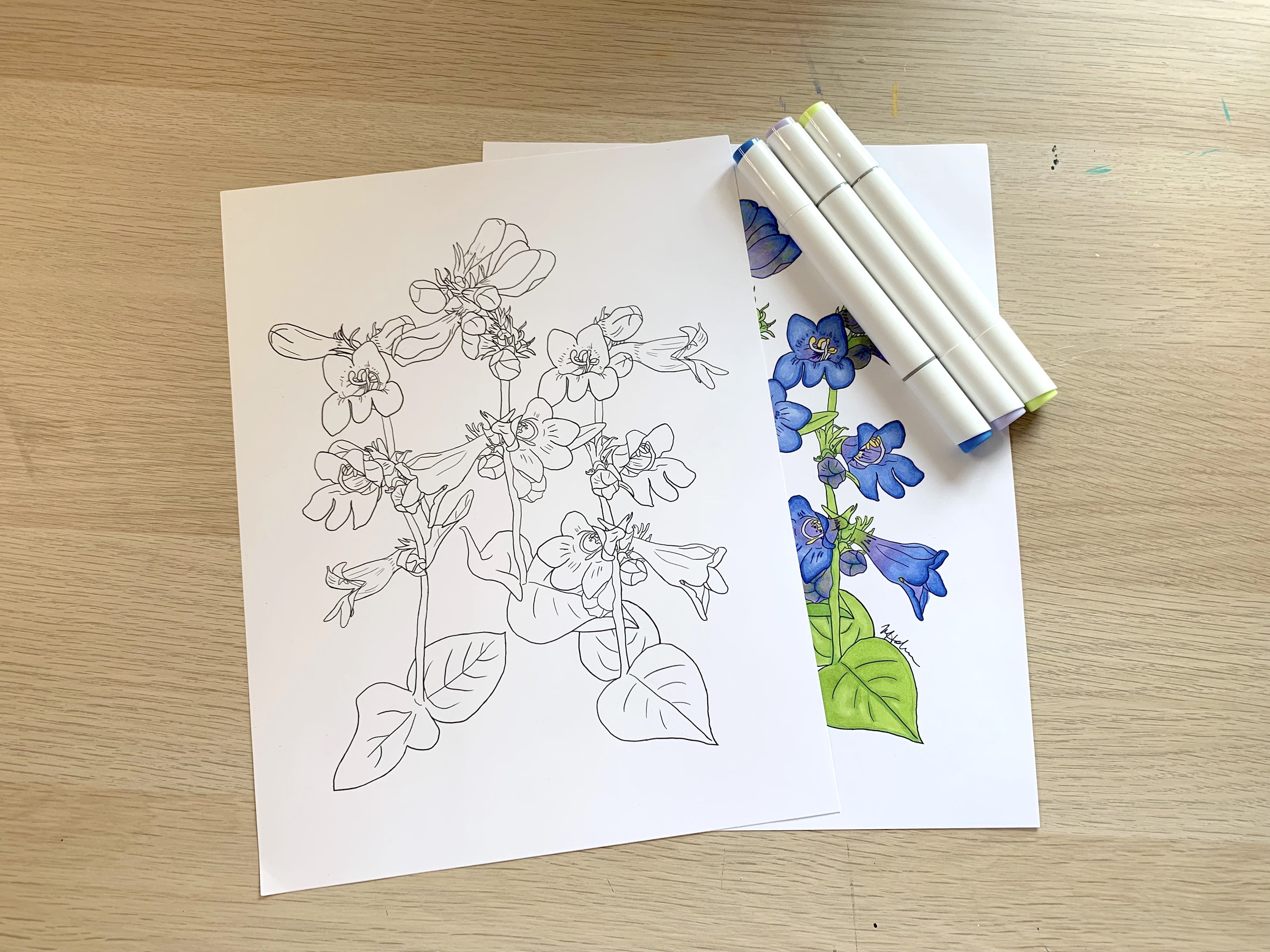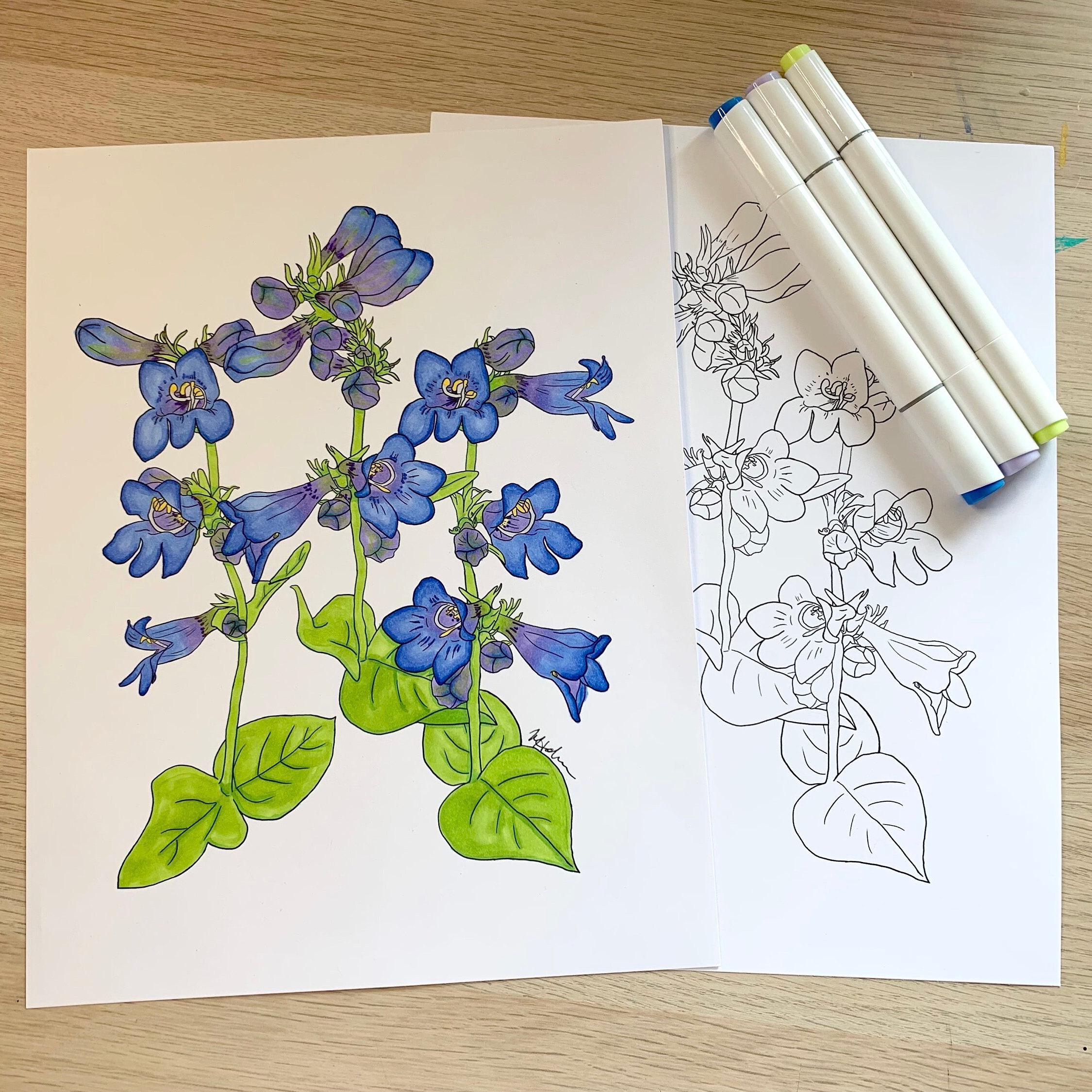 Coloring Page Printable Digital Download of Purple Blue Wild Flower Beard Tongue