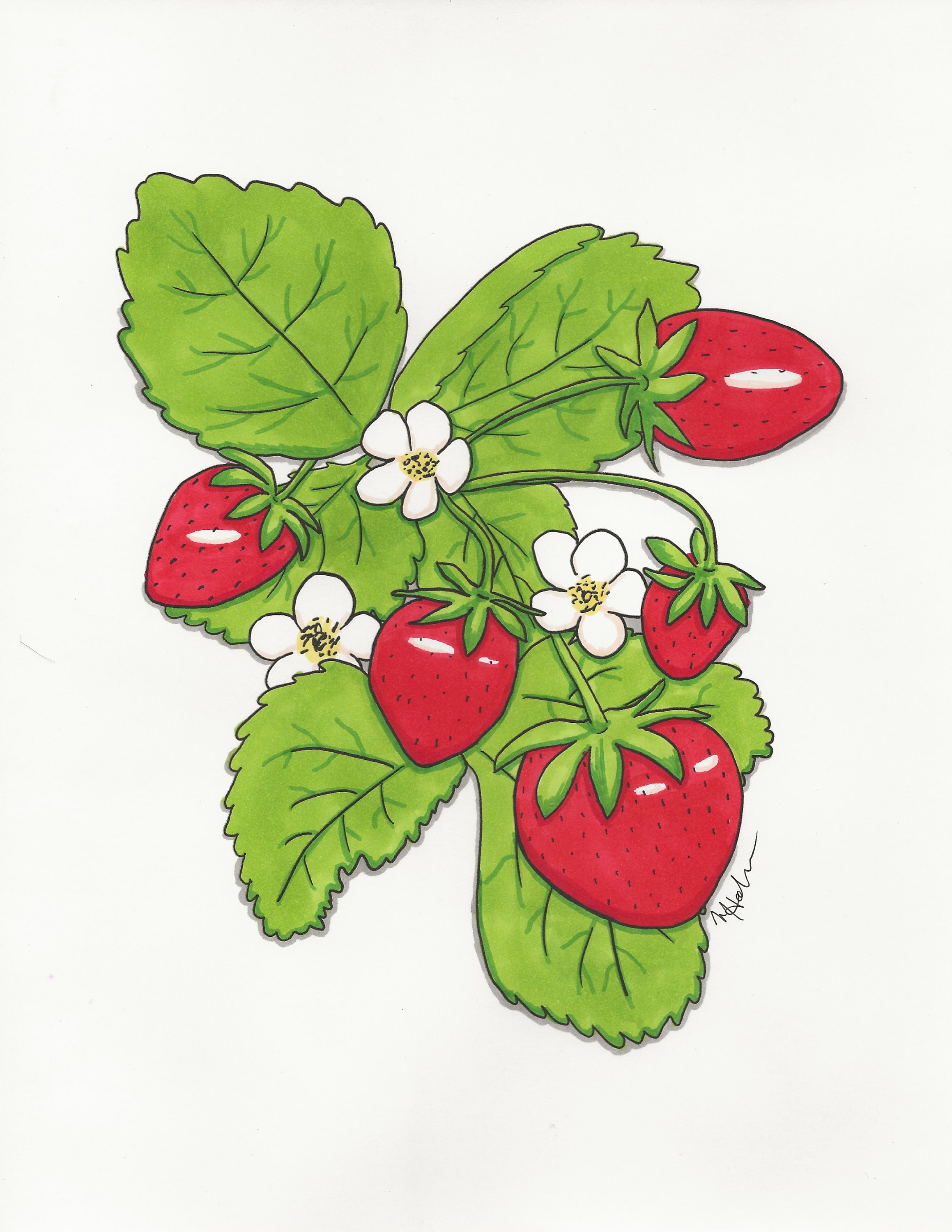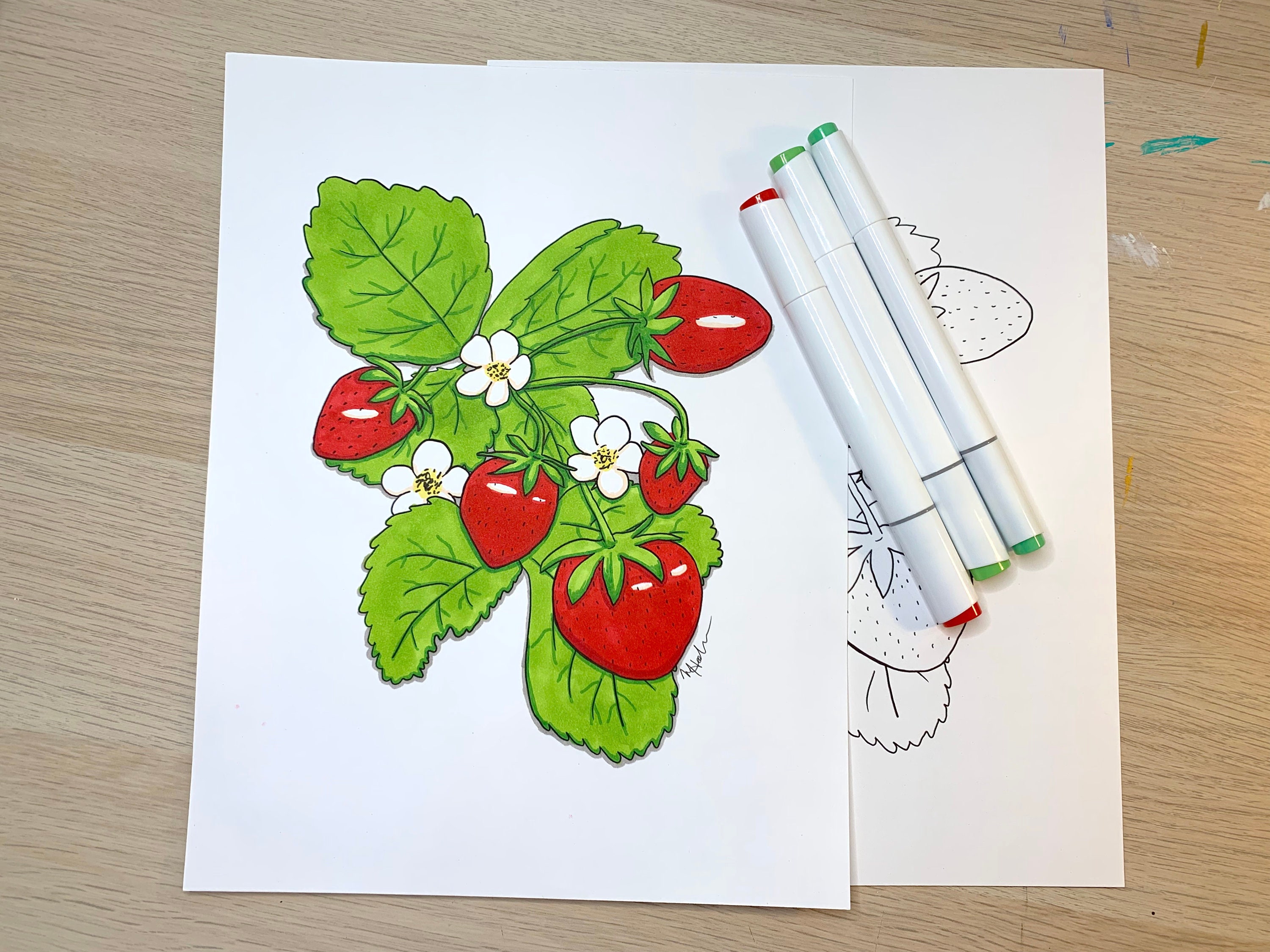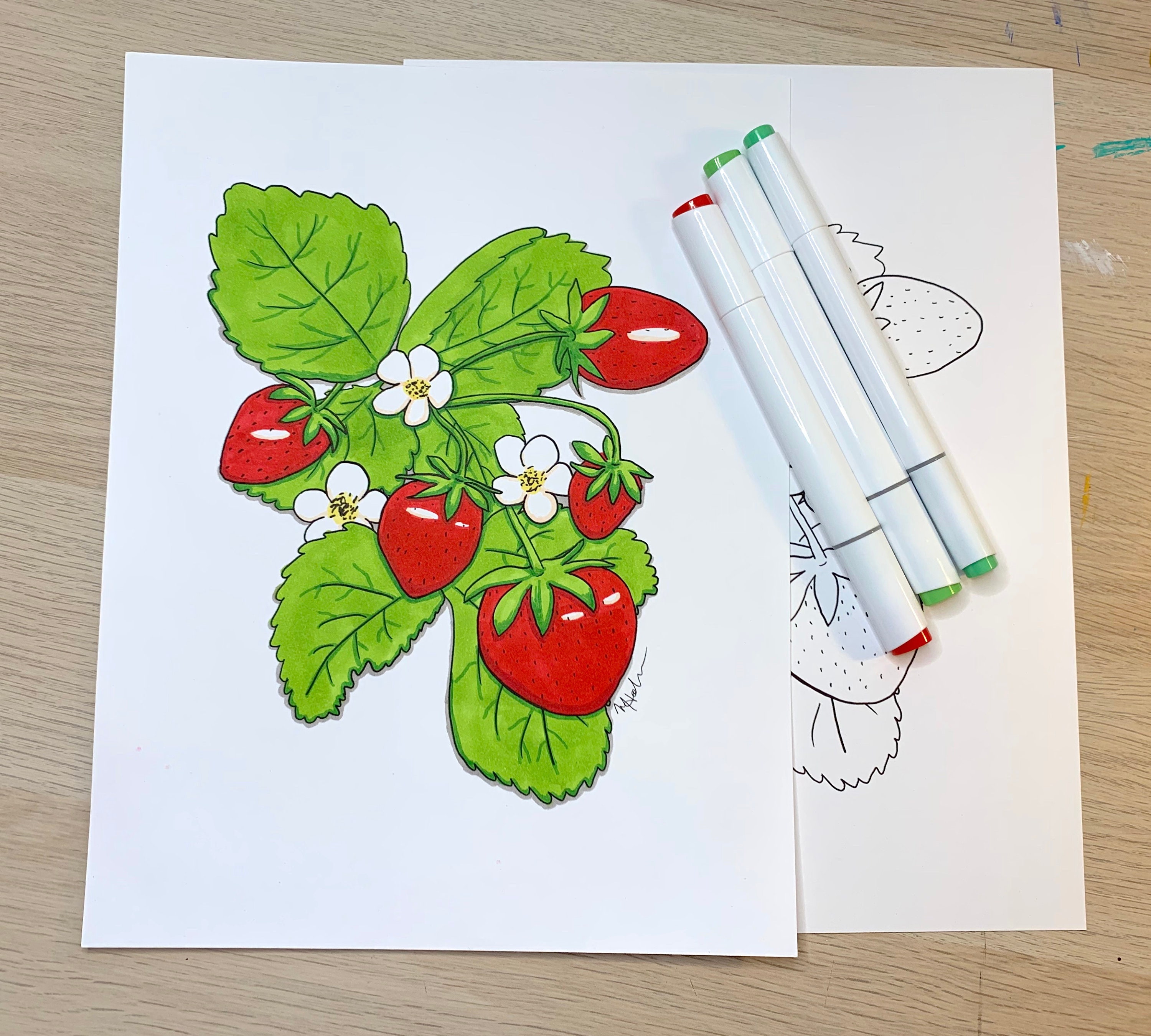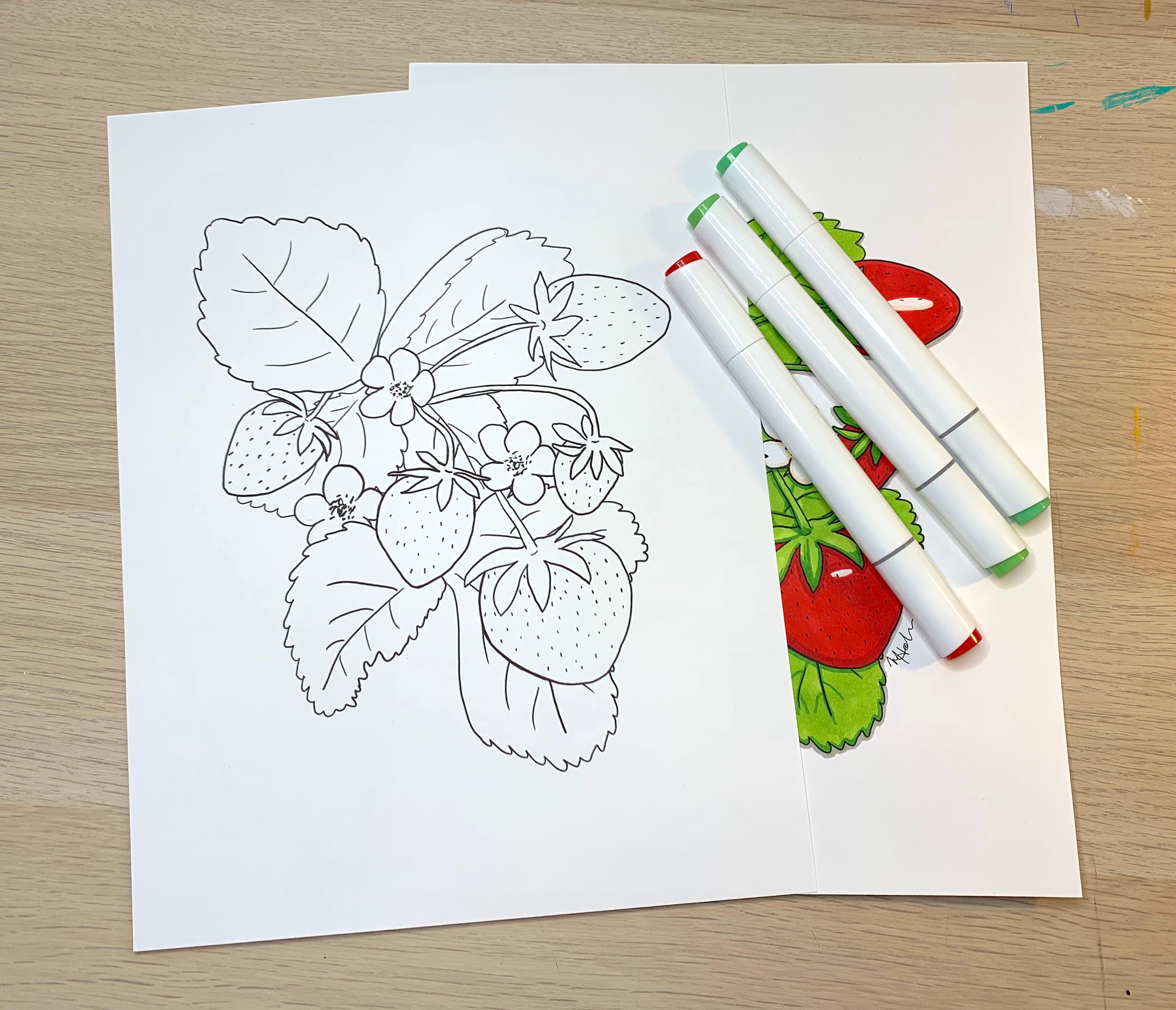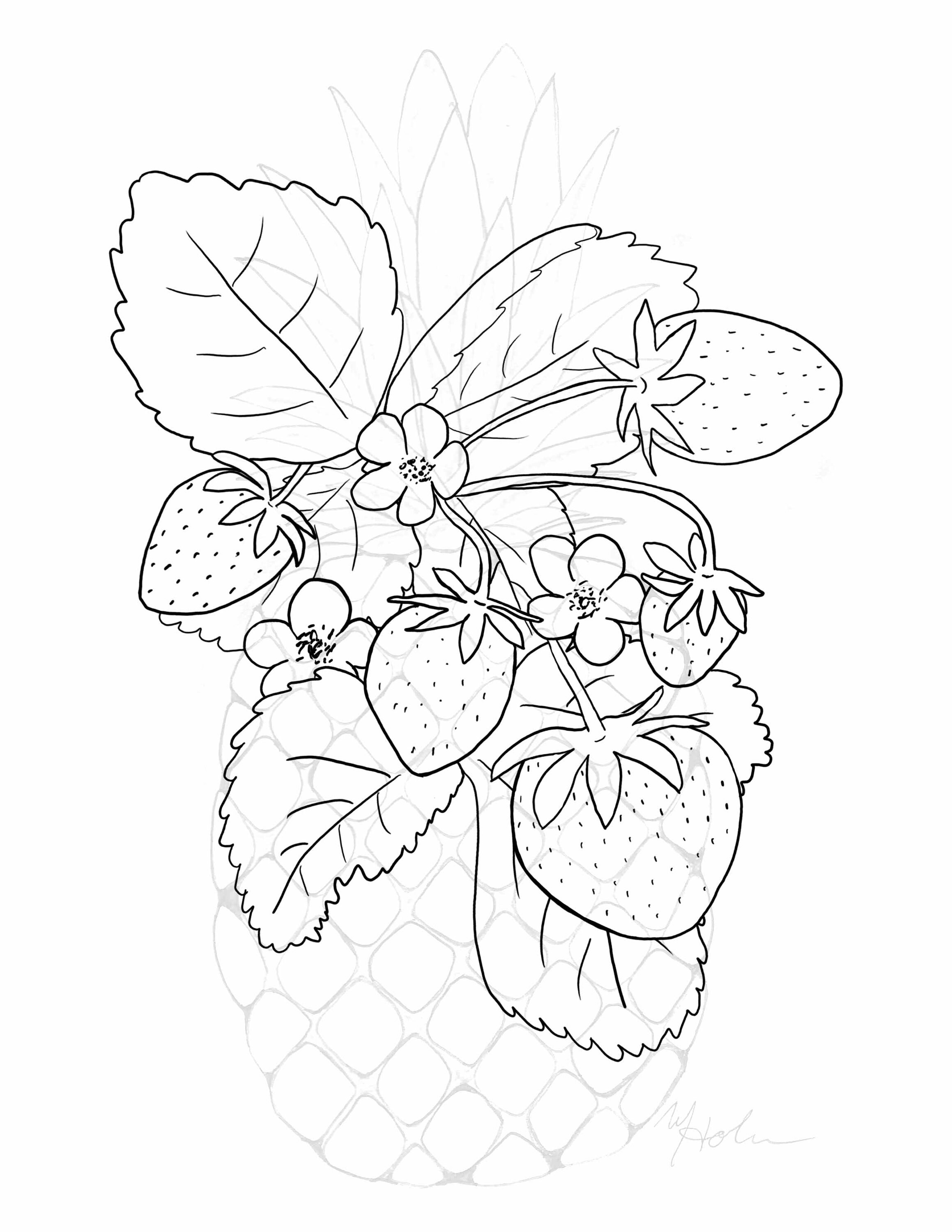 Strawberry Digital Download Printable Coloring Page for all ages, relax and color