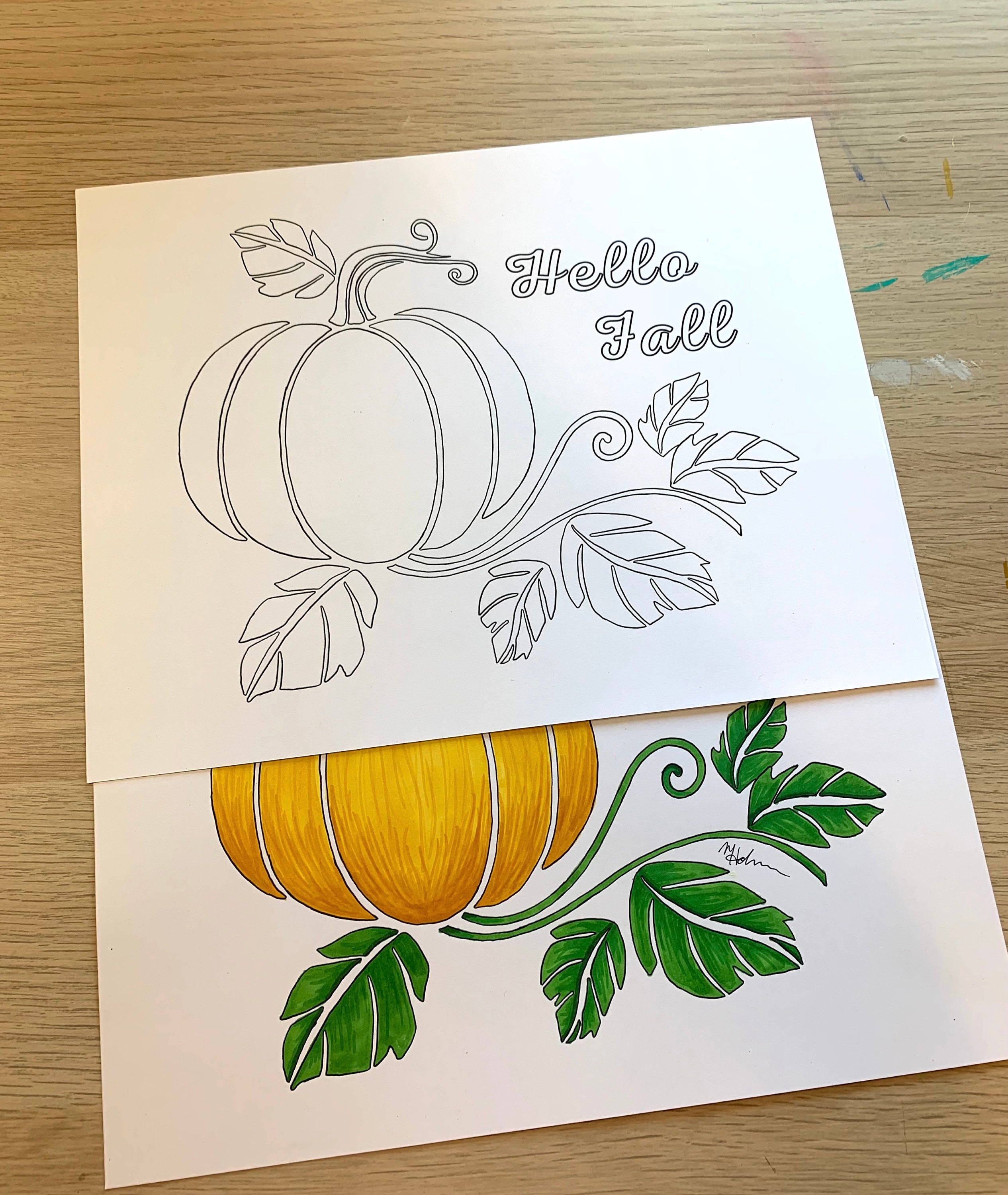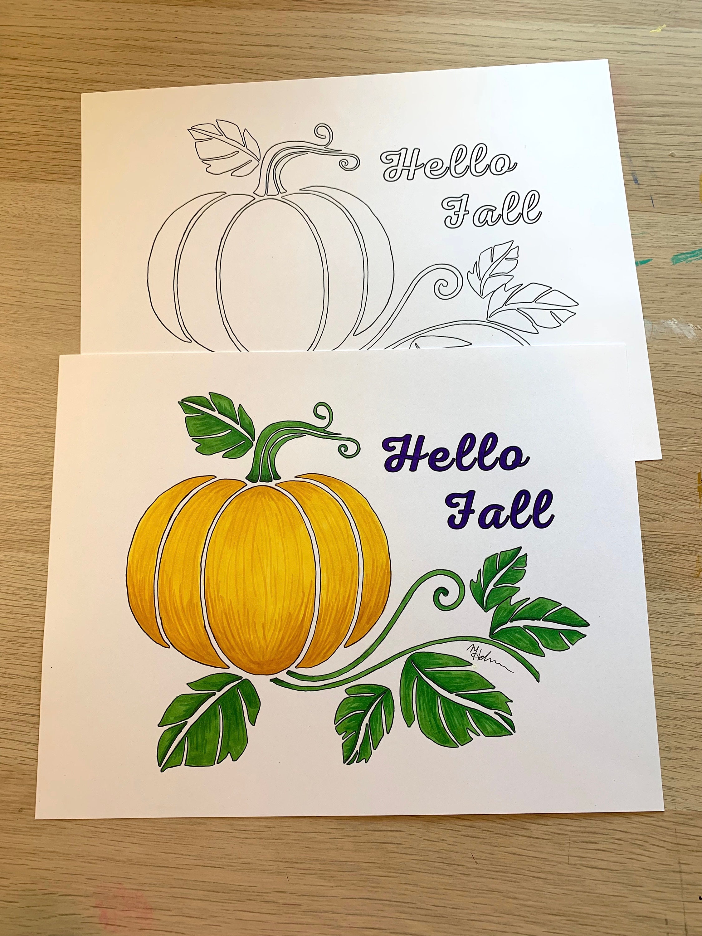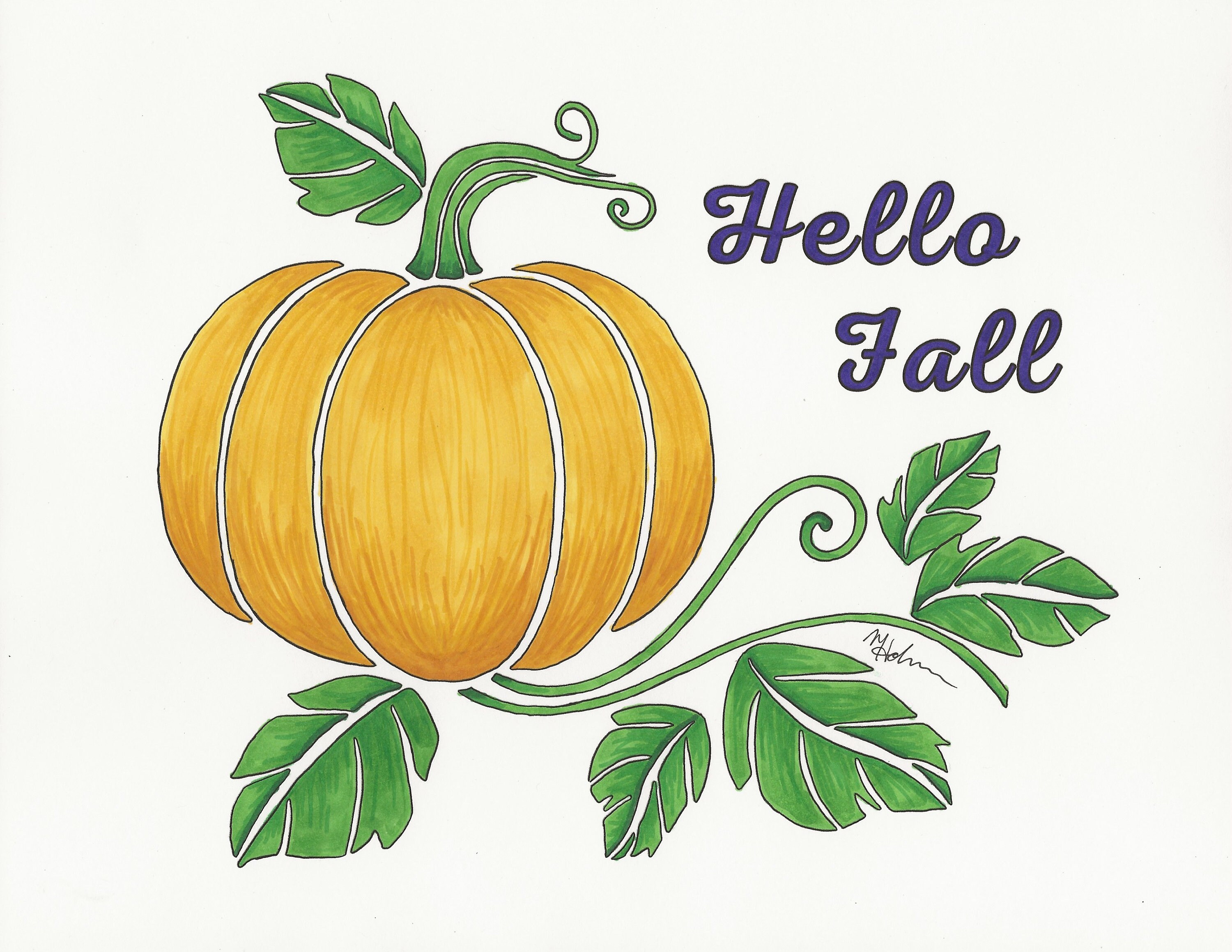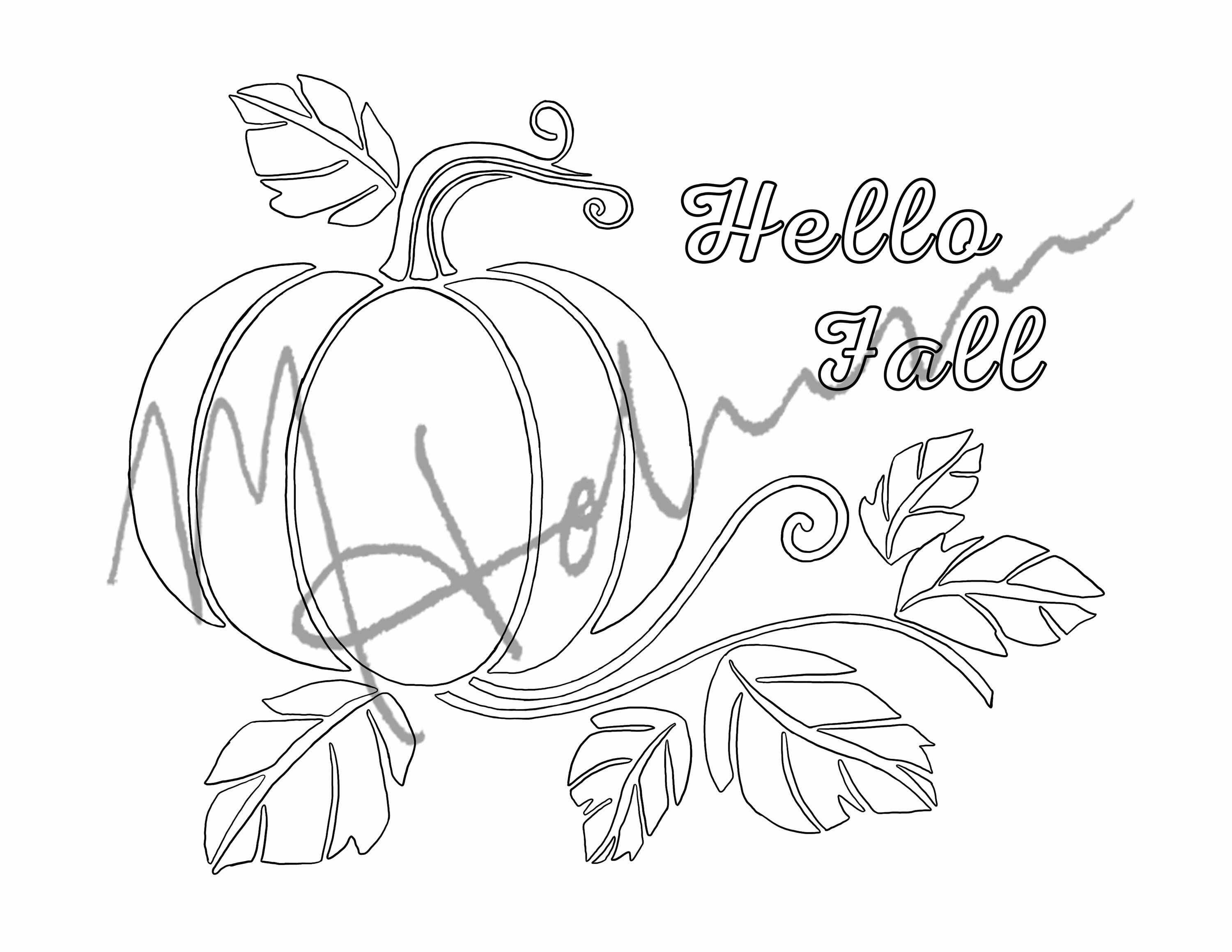 Digital Download Printable Coloring Page Hello Fall Pumpkin for Autumn Halloween Thanksgiving