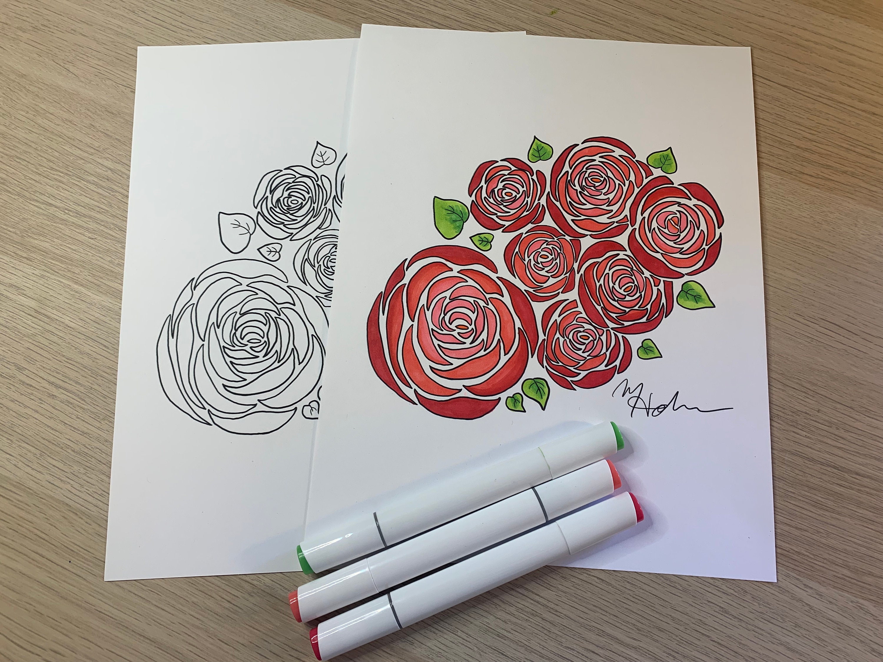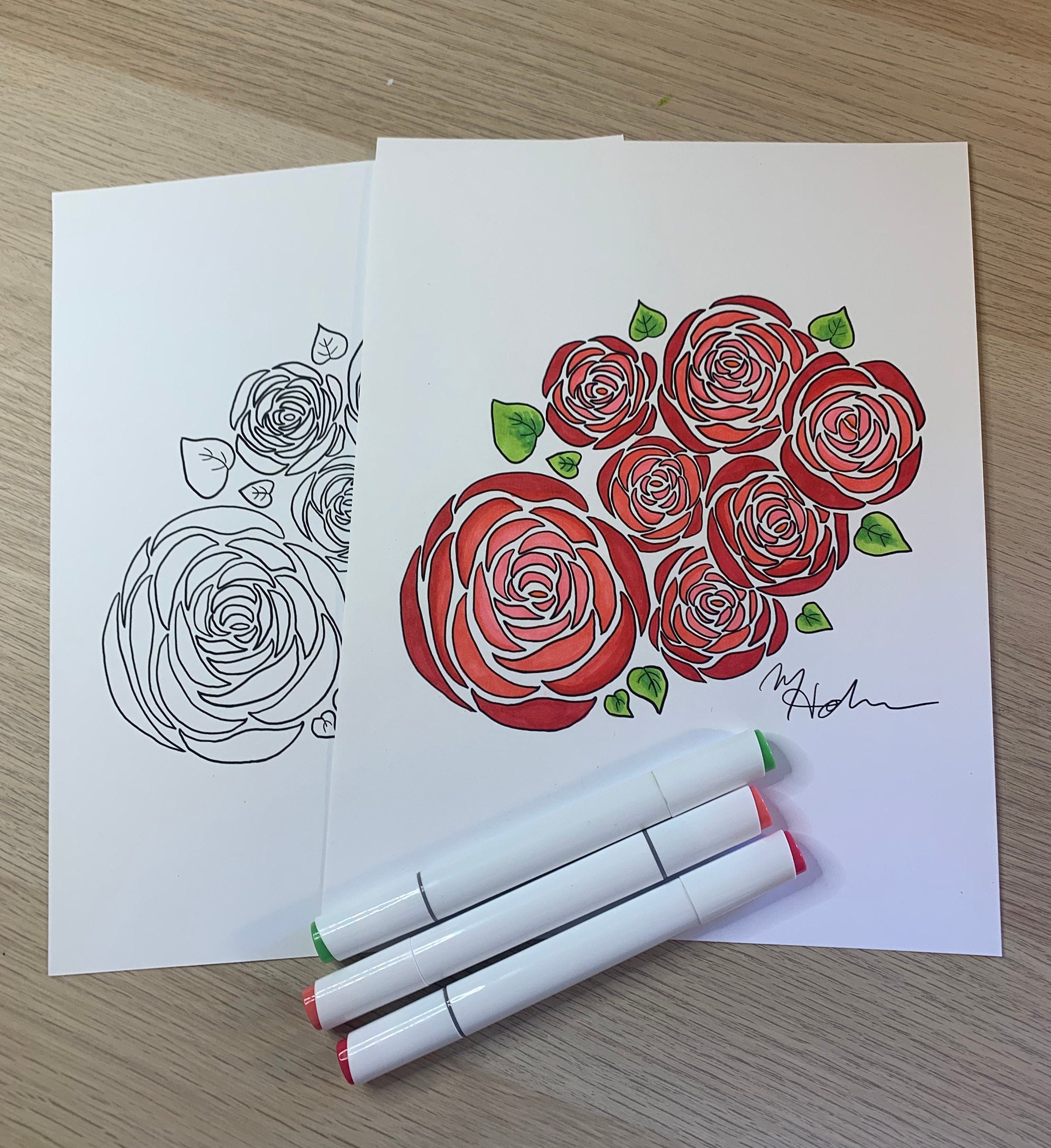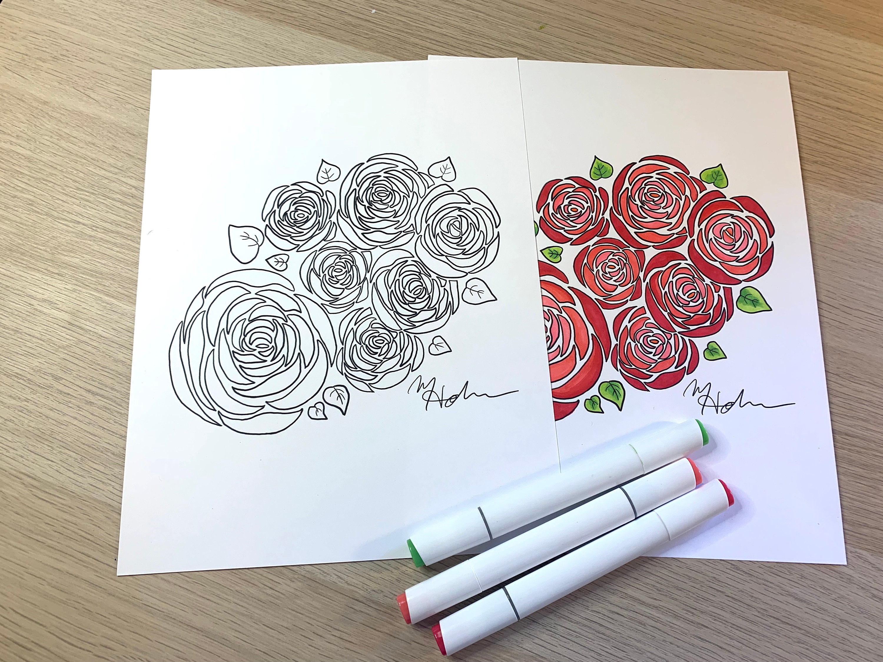 Floral Coloring Page Abstract Roses Printable Digital Download
