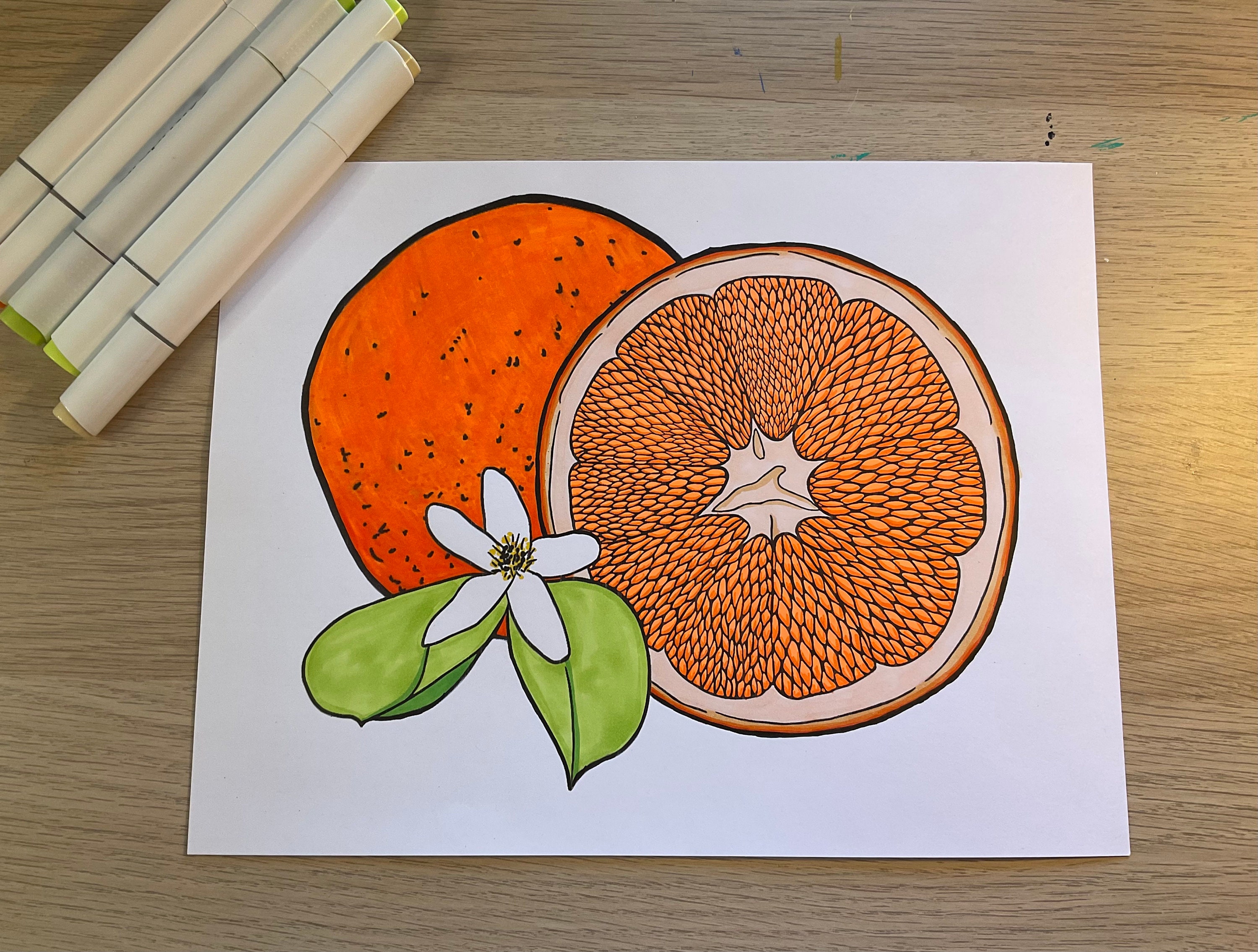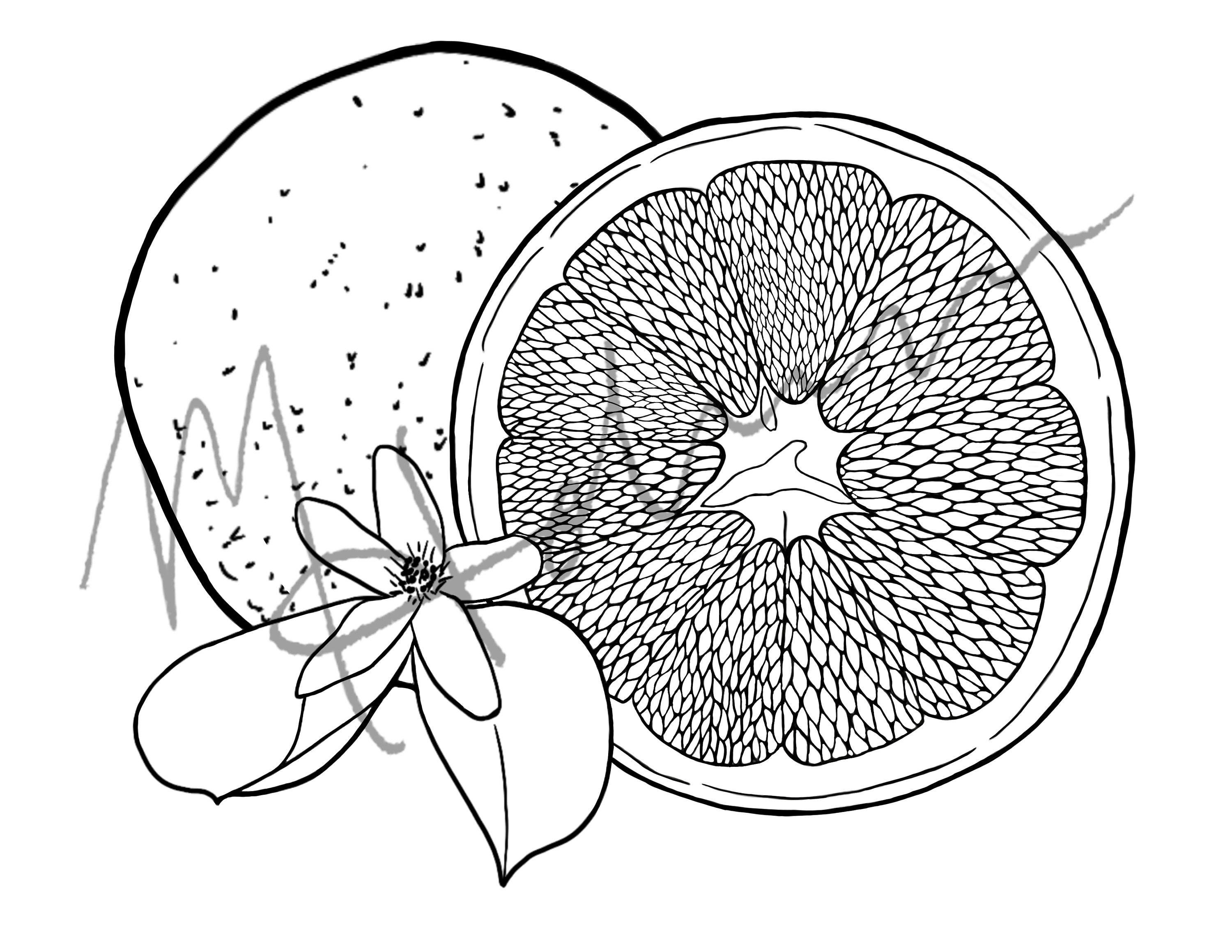 Orange Citrus Fruit Digital Download Printable Coloring Page for all ages, relax and color