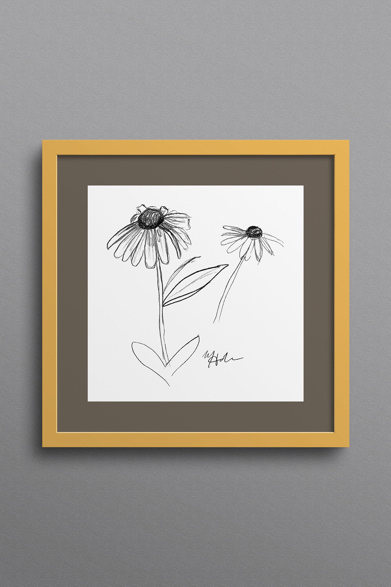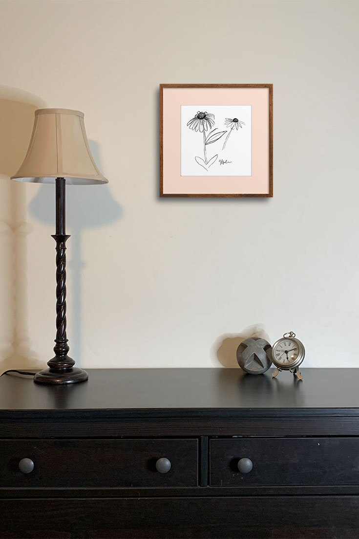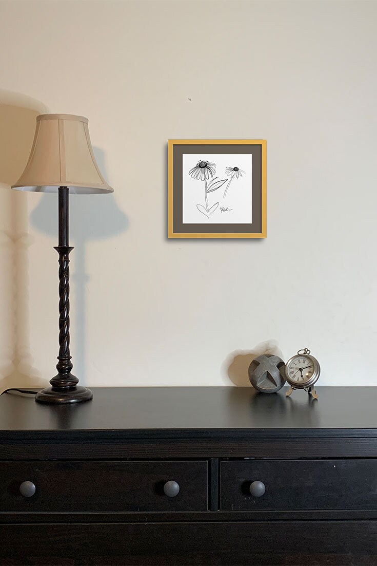Daisy Sketch Art Printable DIGITAL Download Home Decor Wall Art Sunflower 5x5 Drawing Flower Plant Illustration Coneflower