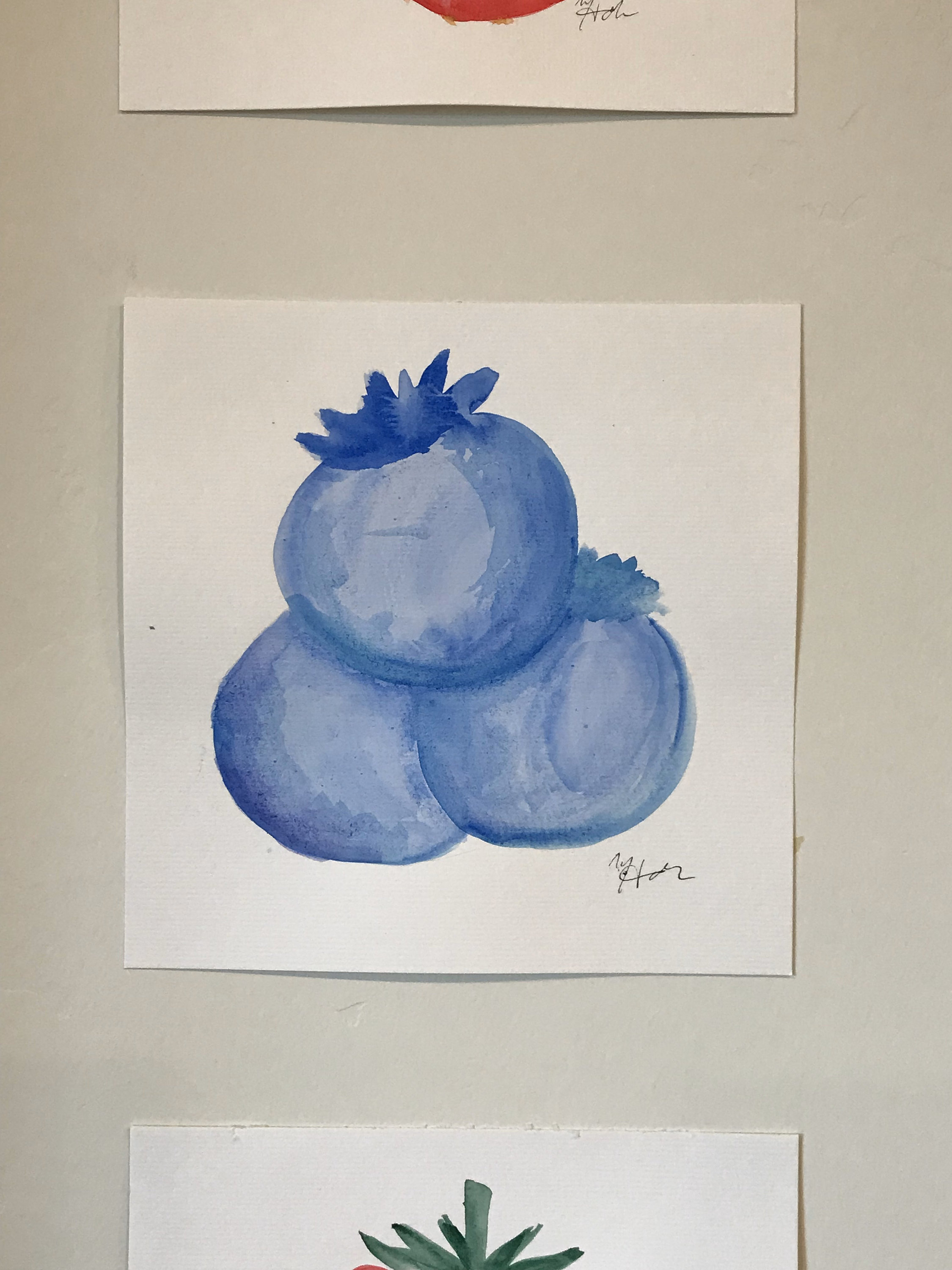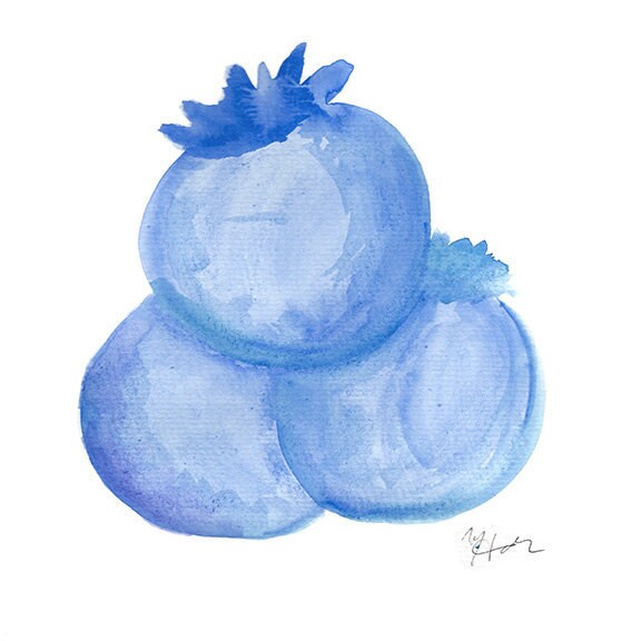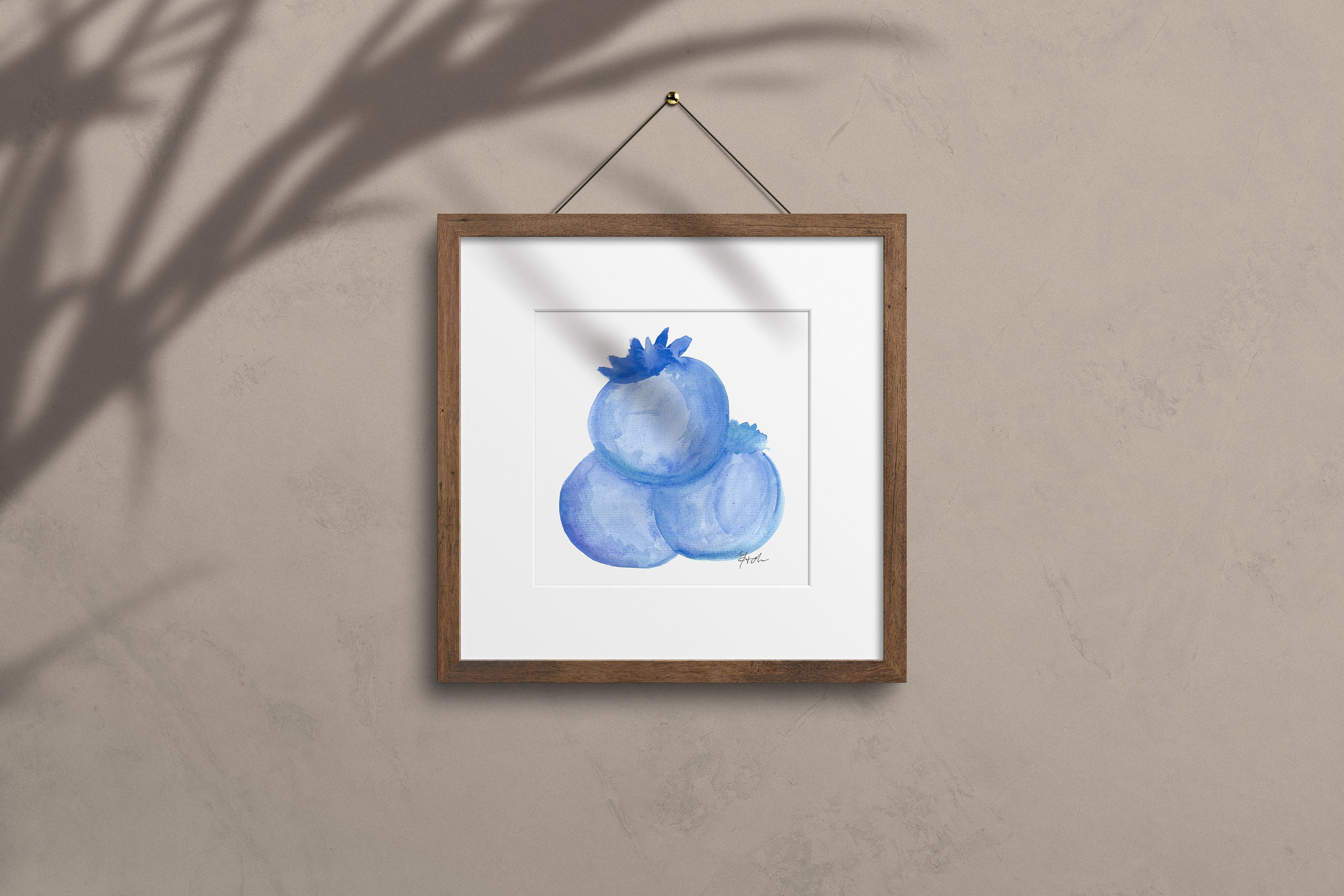 Blueberry Art Printable Digital Download of Watercolor Painting Wall Art Home Decor Square Dimension Fruit Berry