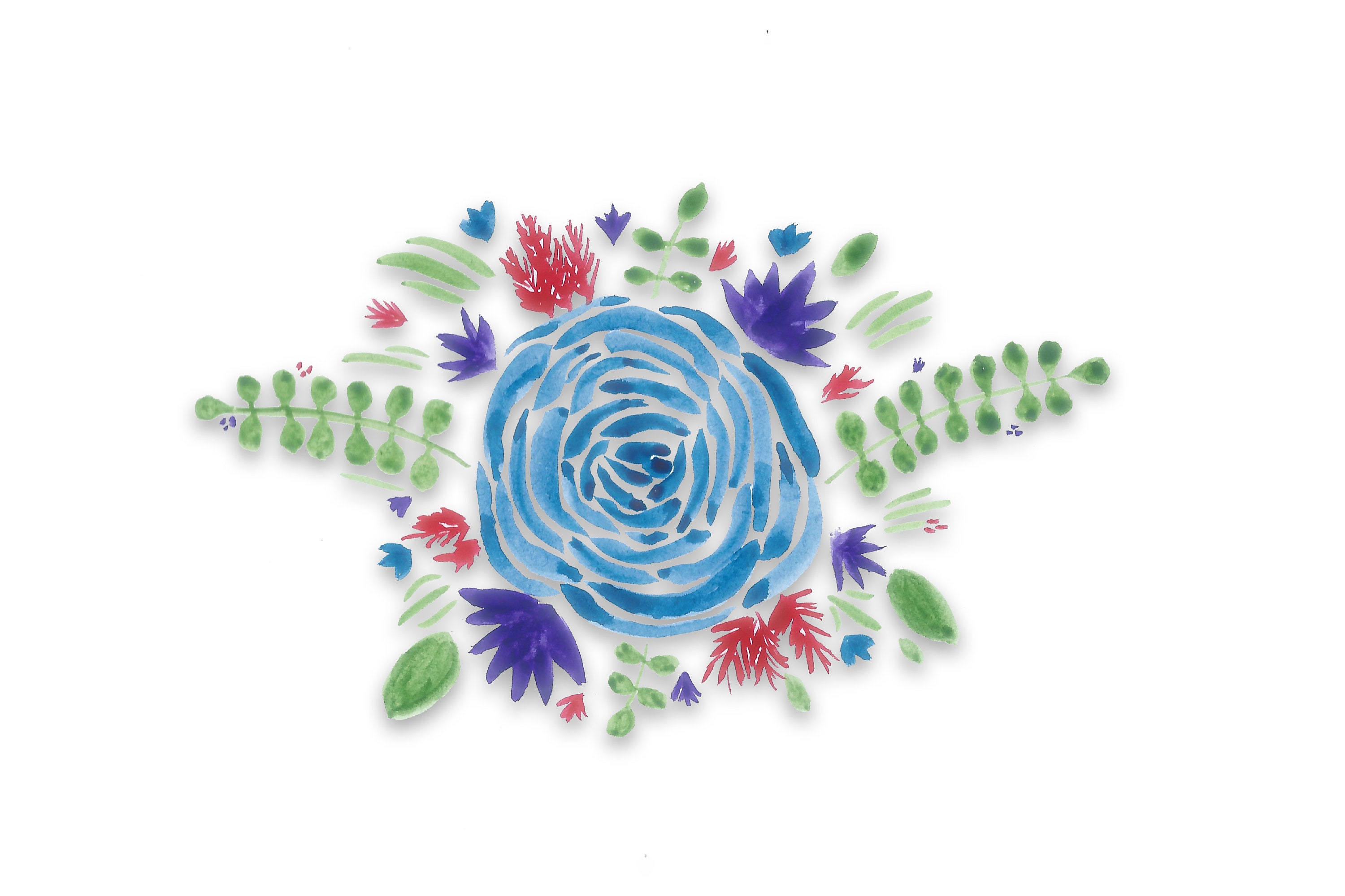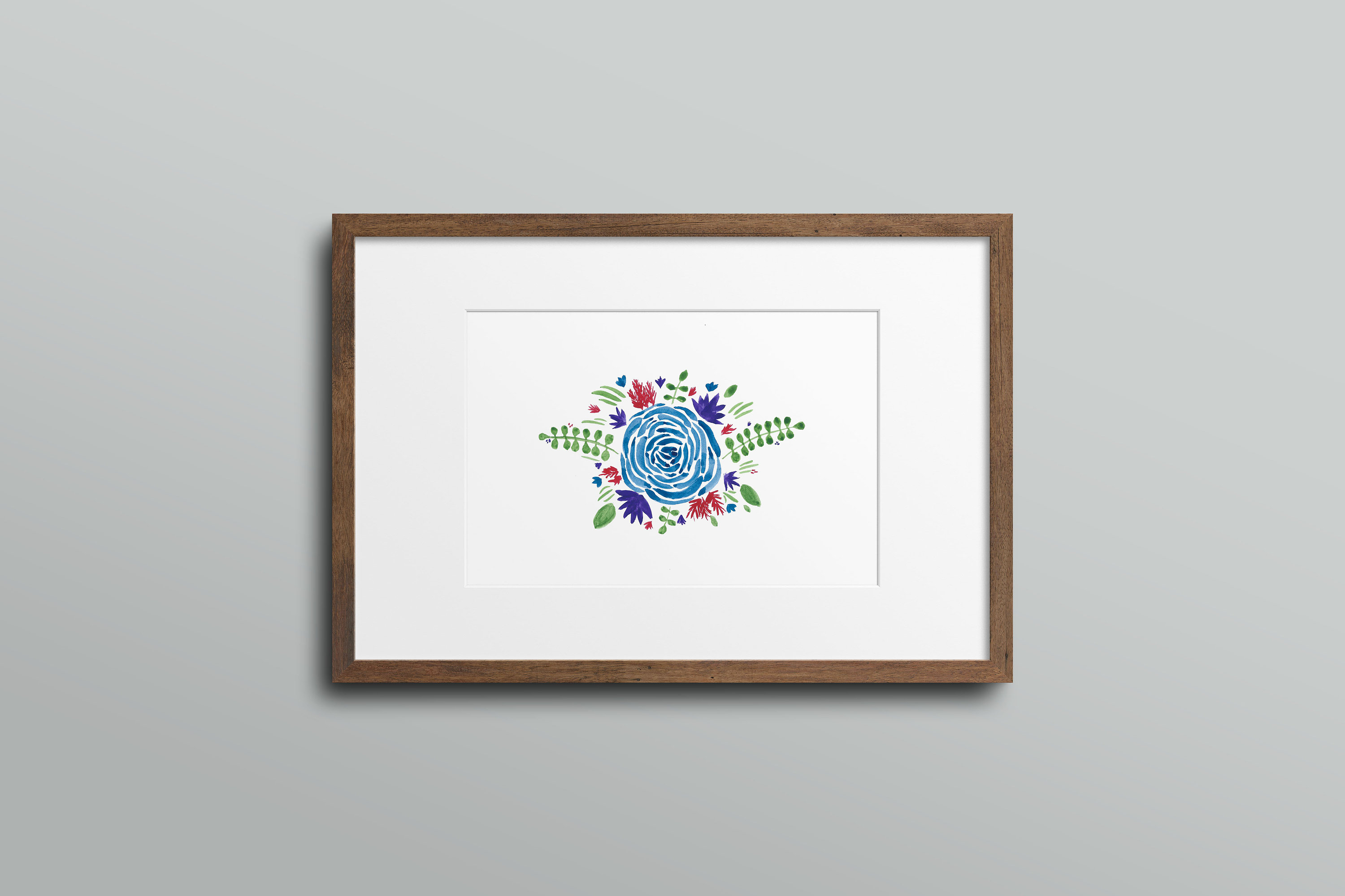 Blue Rose Bouquet Flower Art Printable Digital Download Wall Art Home Decor 6x4, plant leaf red green colorful watercolor