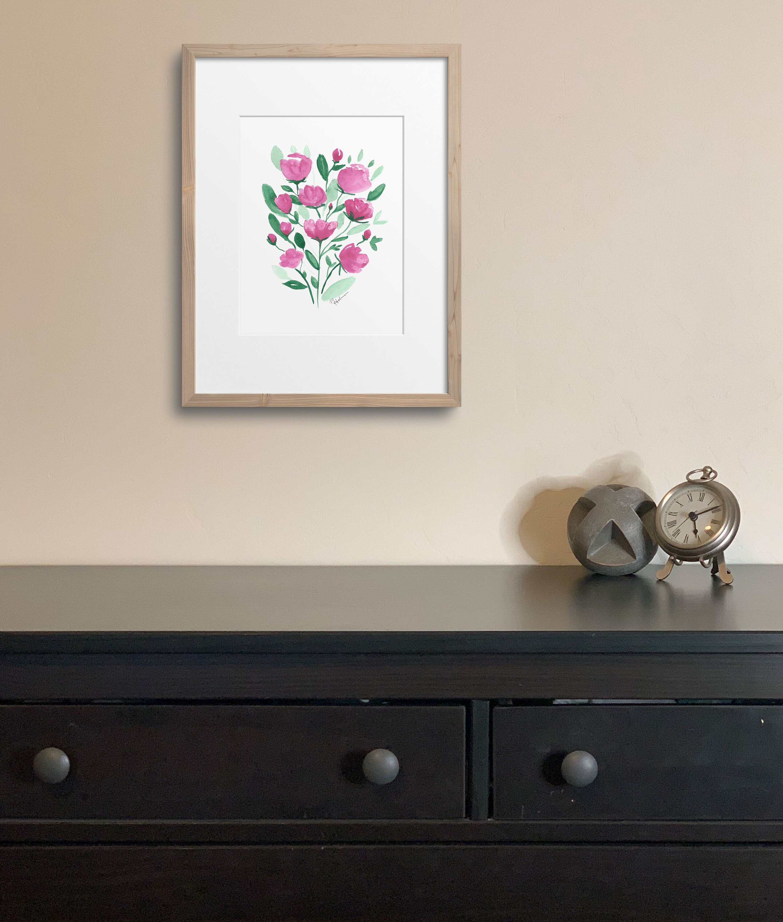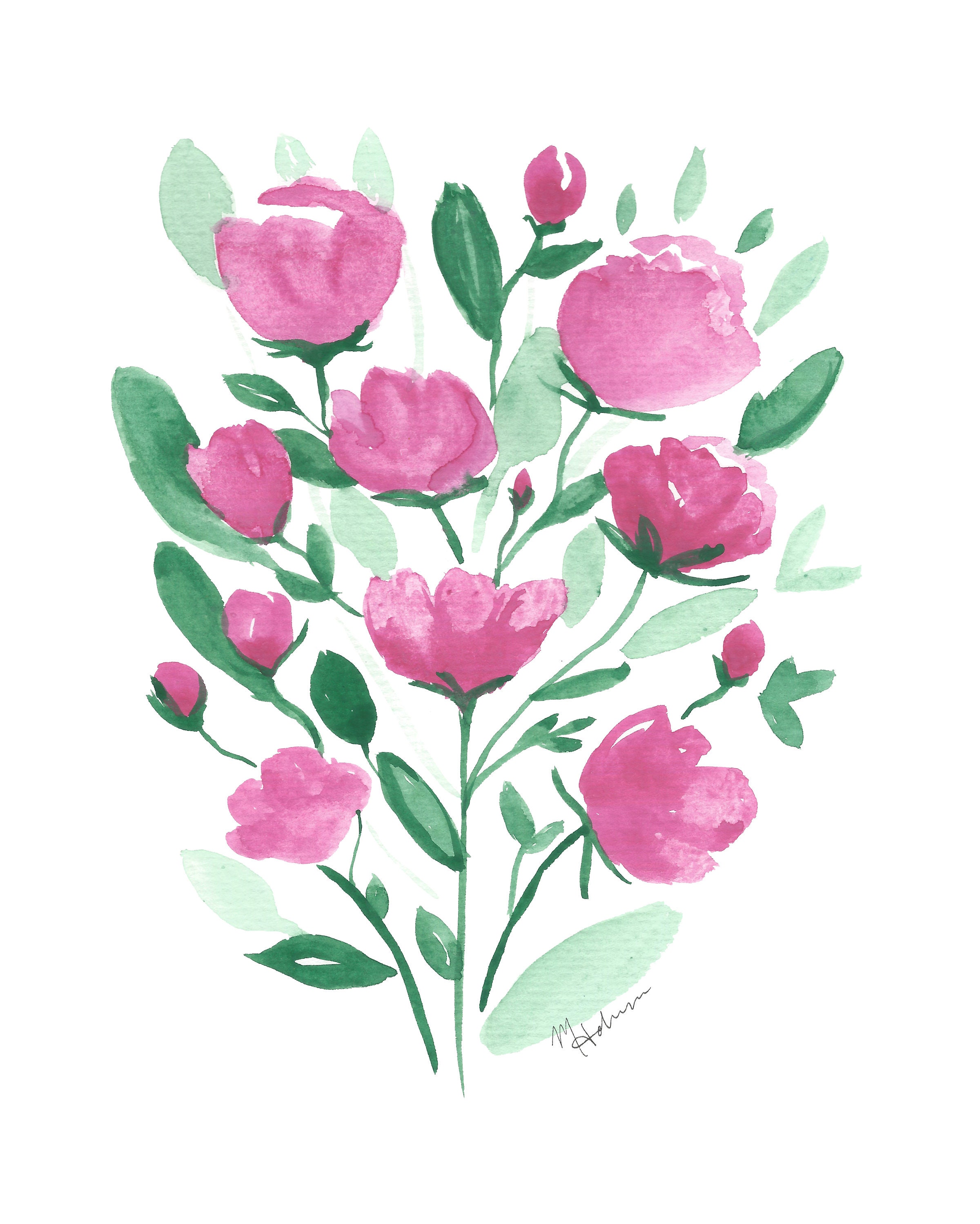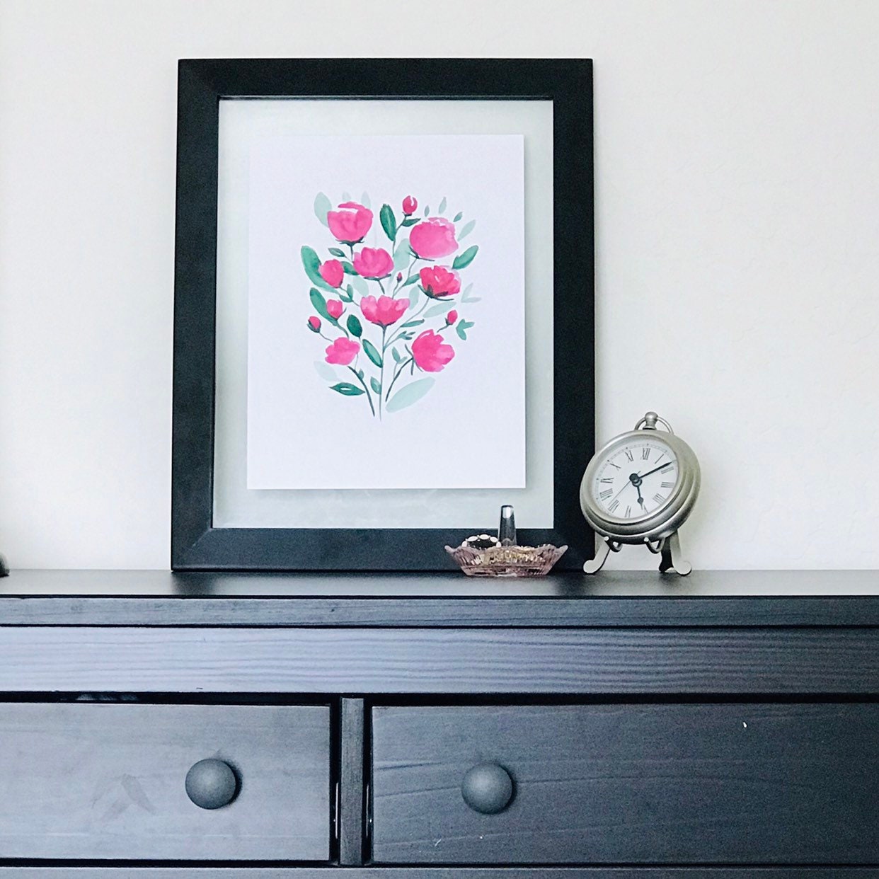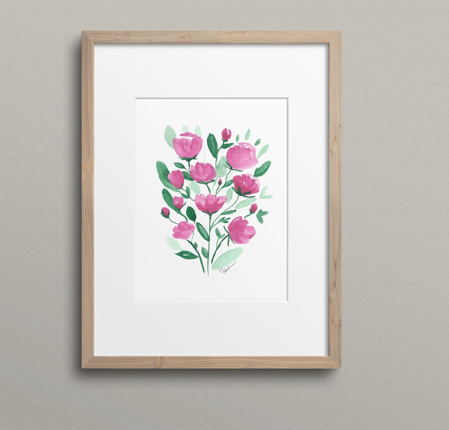 Pink Flower Art Printable Digital Download, Home Decor Wall Art, abstract watercolor painting 8x10, 4x6, 5x7, 9x12, 11x14, 16x20, letter