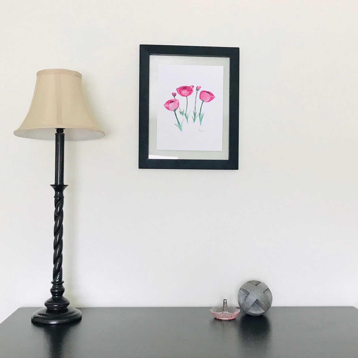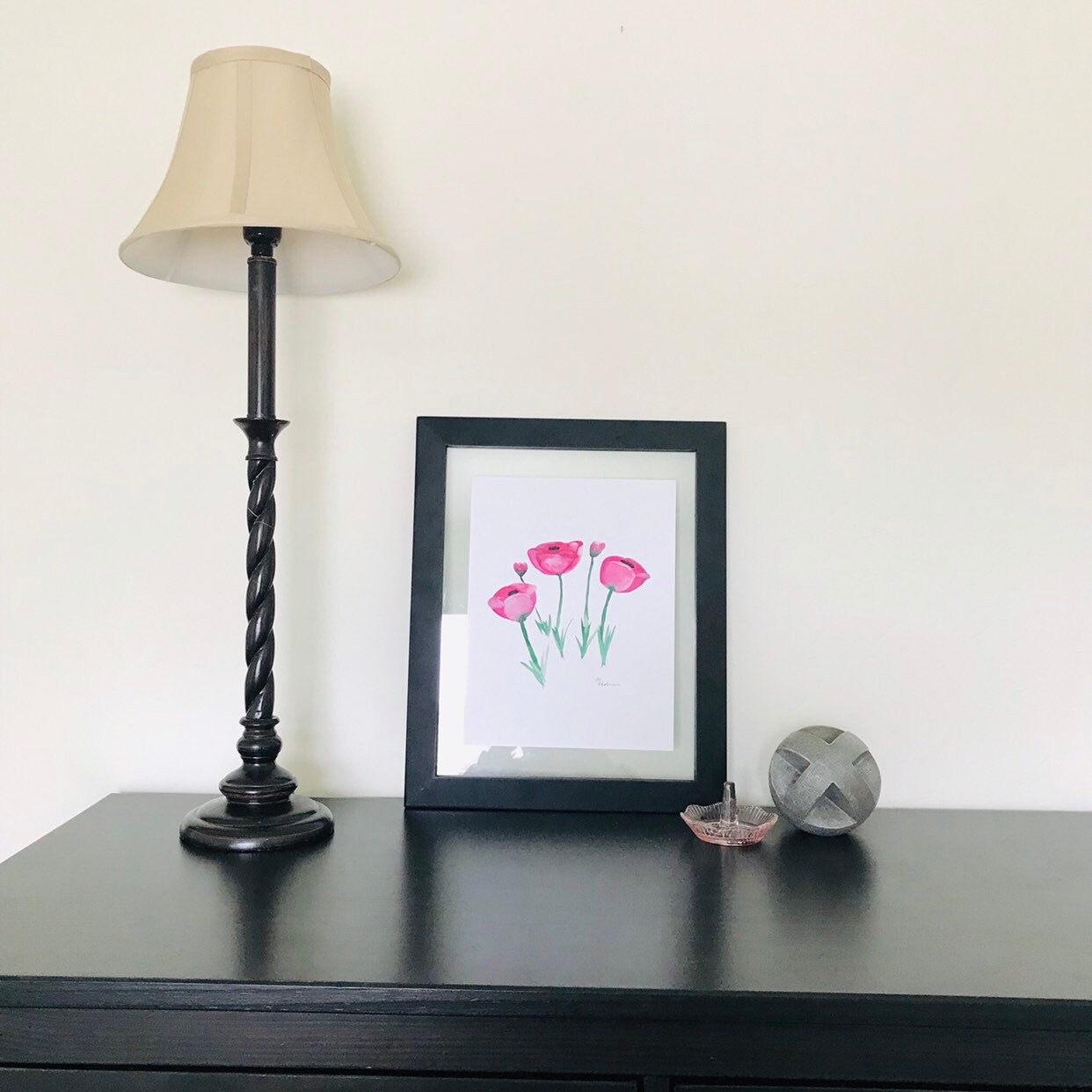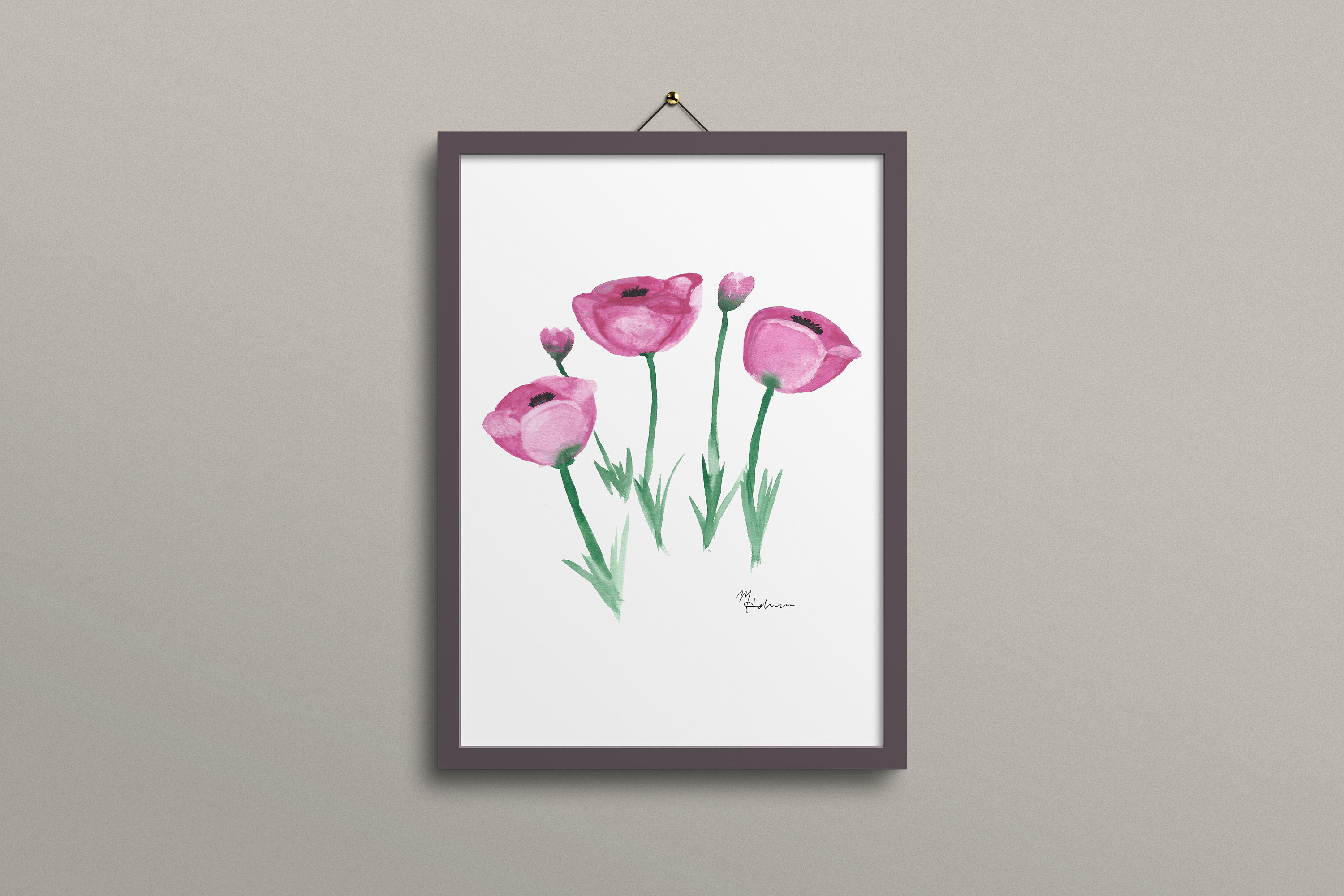Poppy Flower Art Printable Digital Download, Home Decor Wall Art, Pink Poppies 8x10 watercolor painting, Floral Art, Pink plant, garden