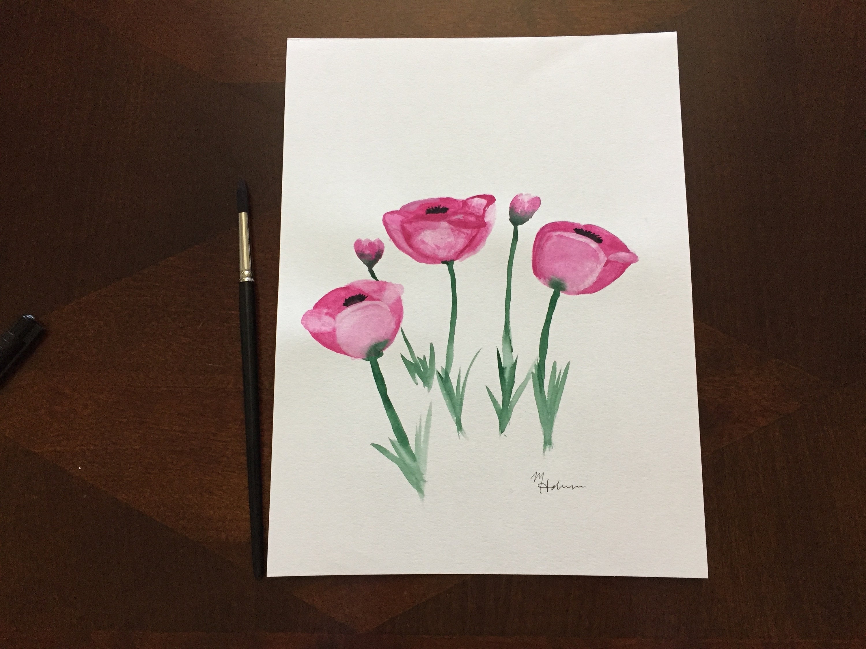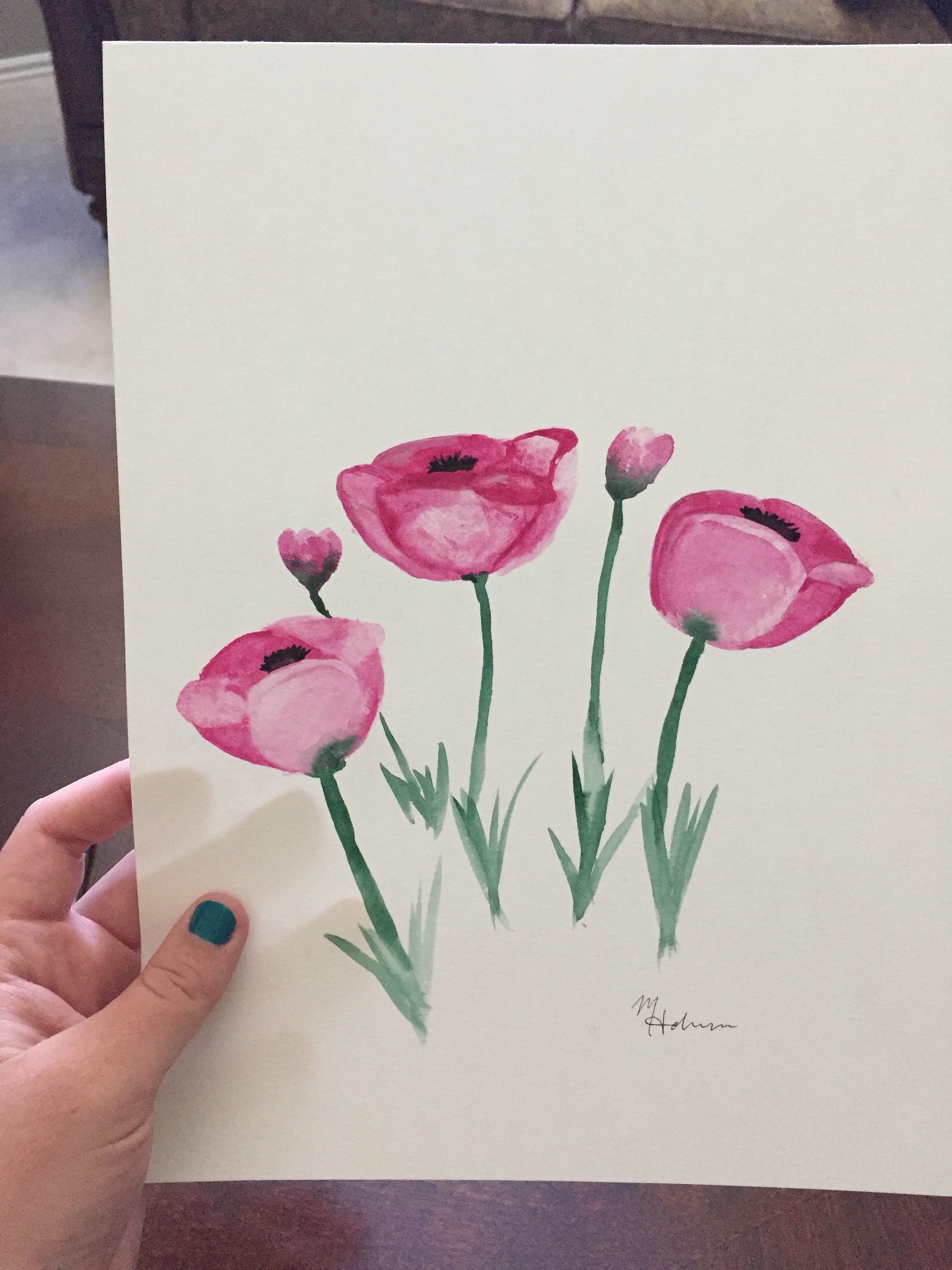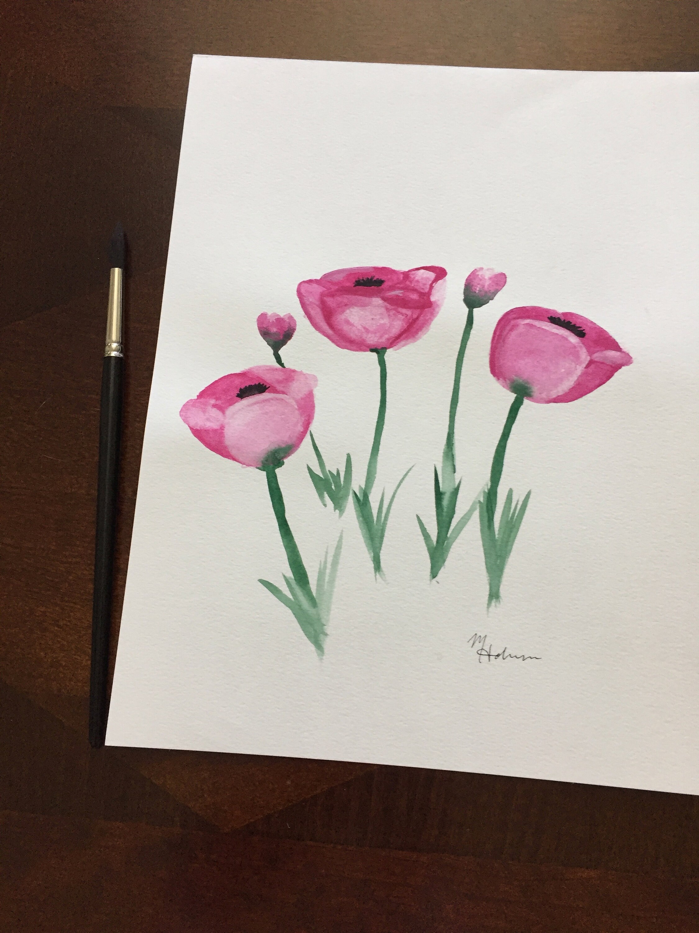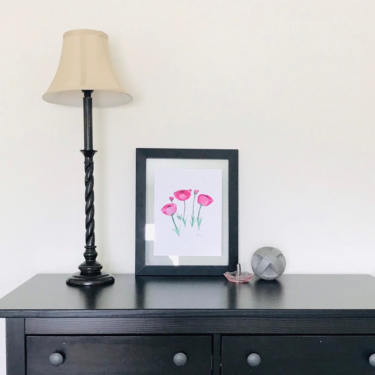 Poppy Flower Art Printable Digital Download, Home Decor Wall Art, Pink Poppies 8x10 watercolor painting, Floral Art, Pink plant, garden