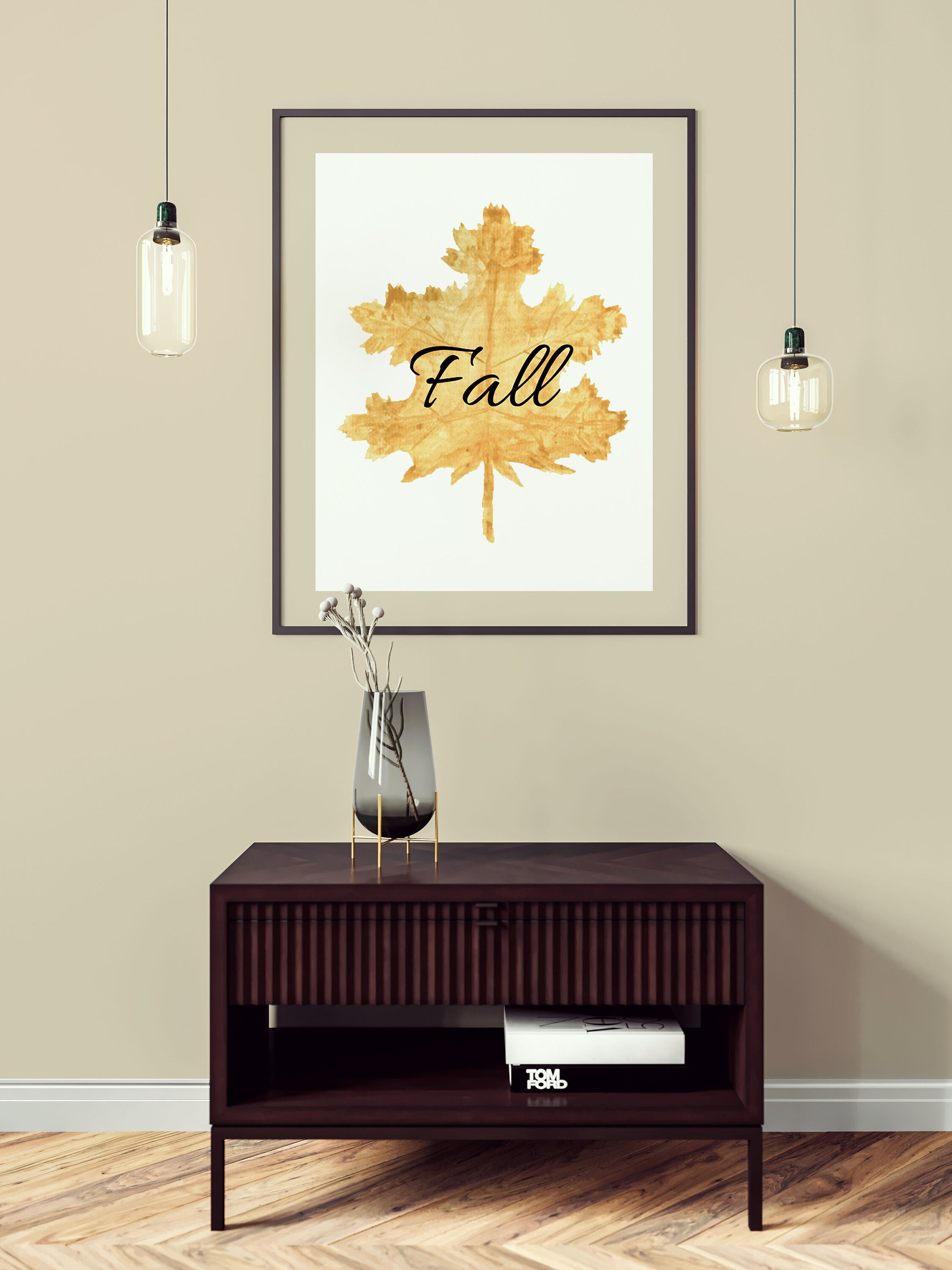 Fall Leaf DIGITAL Download Art Print, Autumn, Thanksgiving, 8x10, Yellow Orange Festive Wall Decor Watercolor painting JPG PNG file