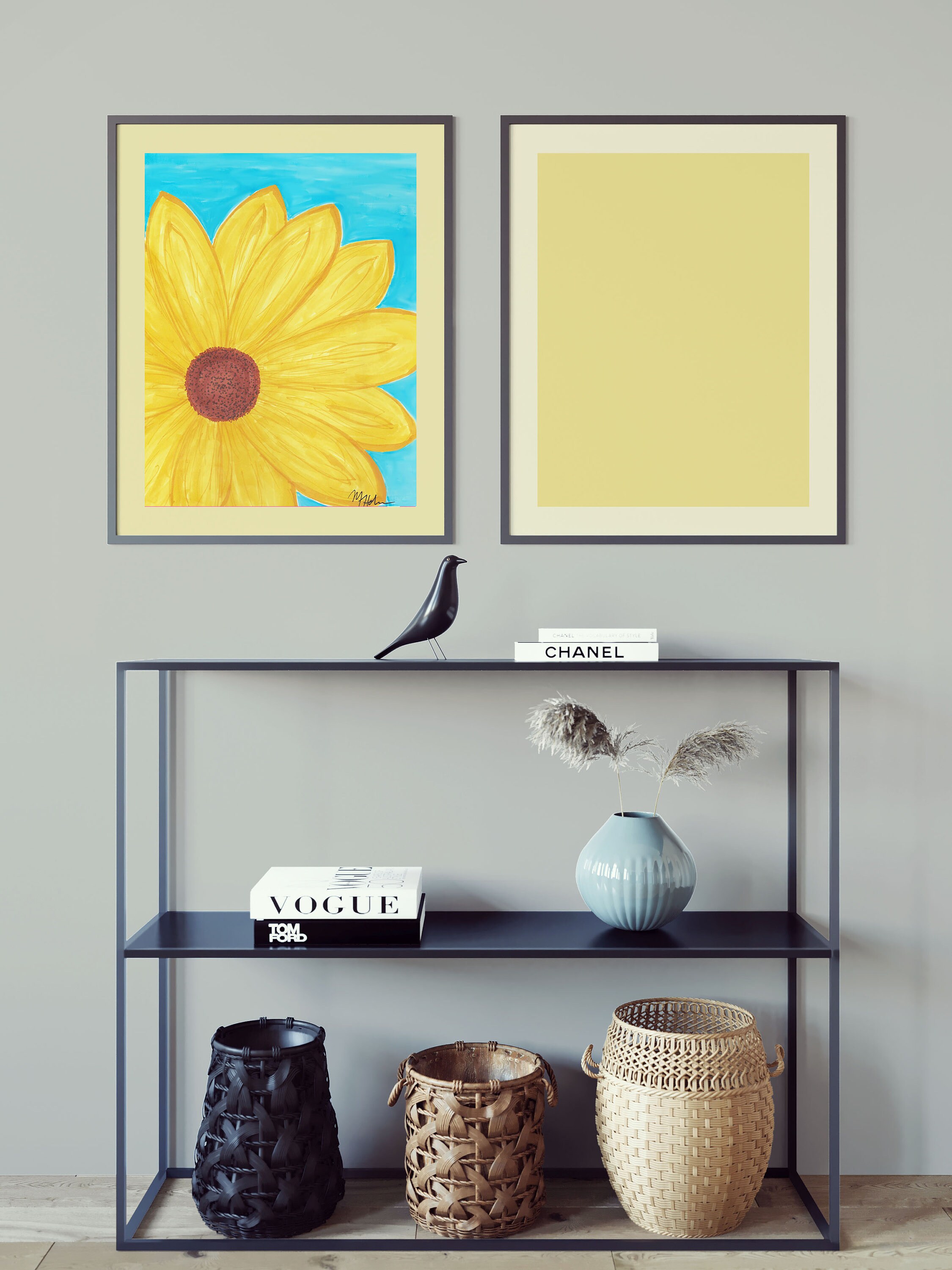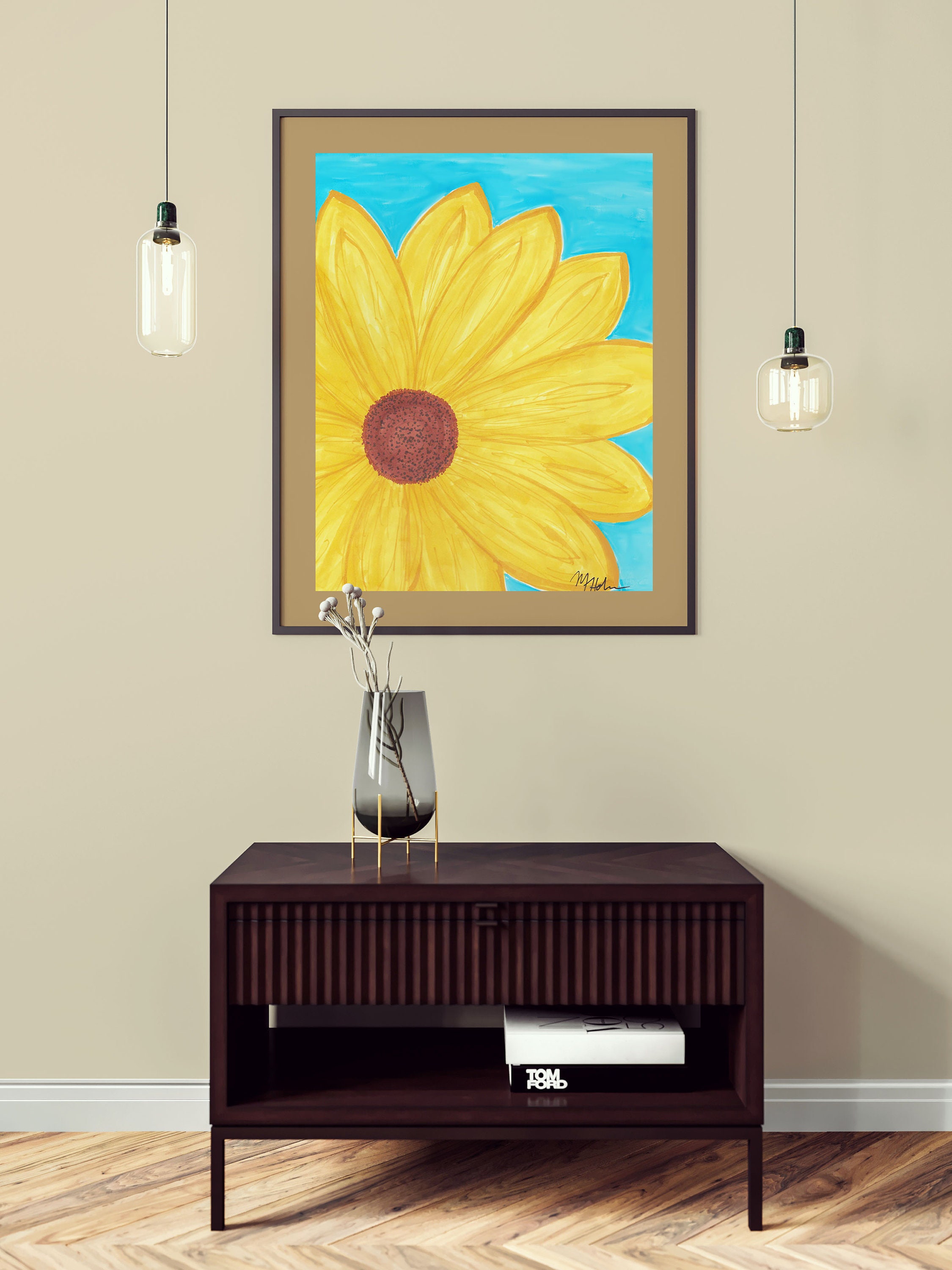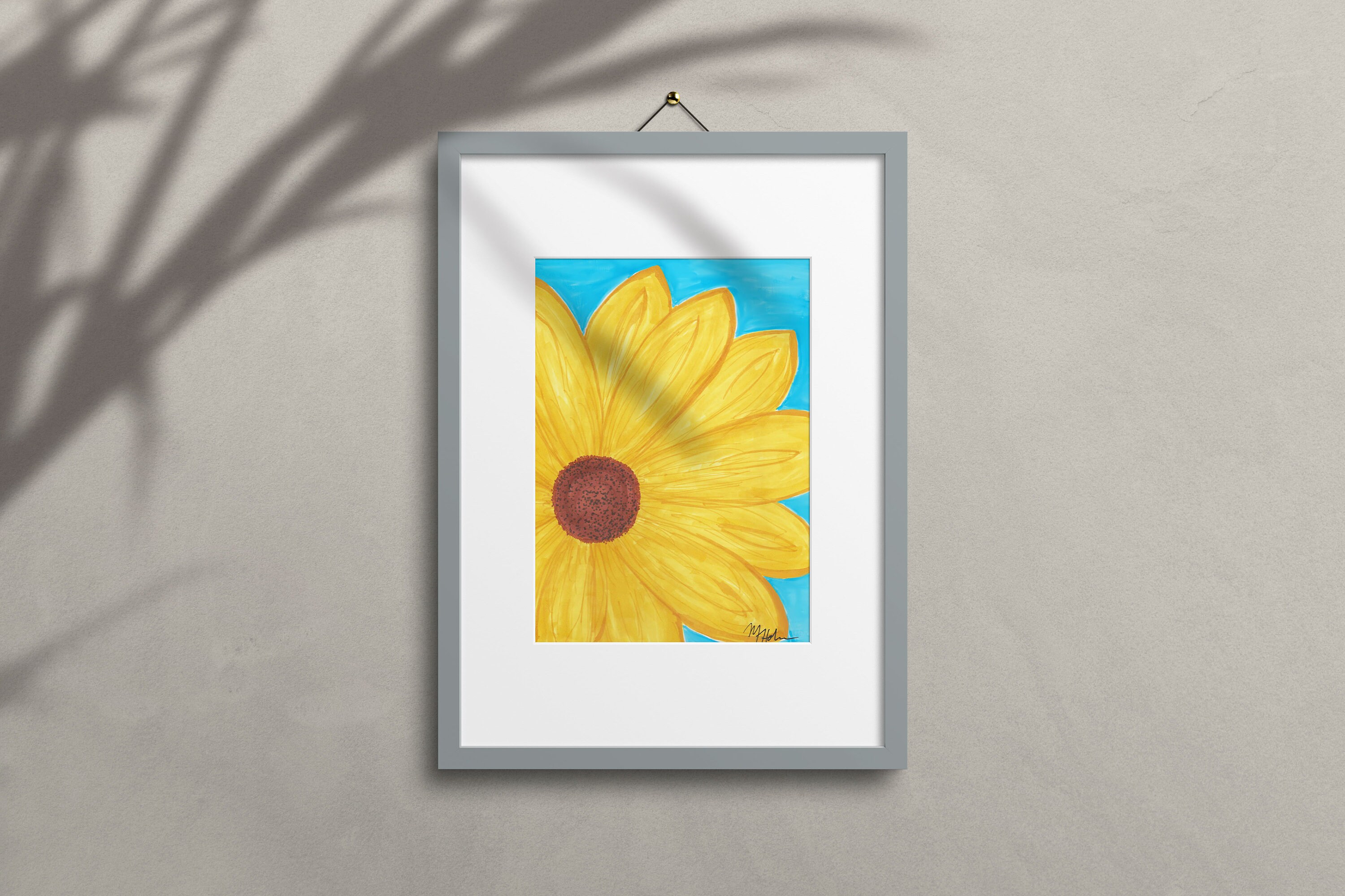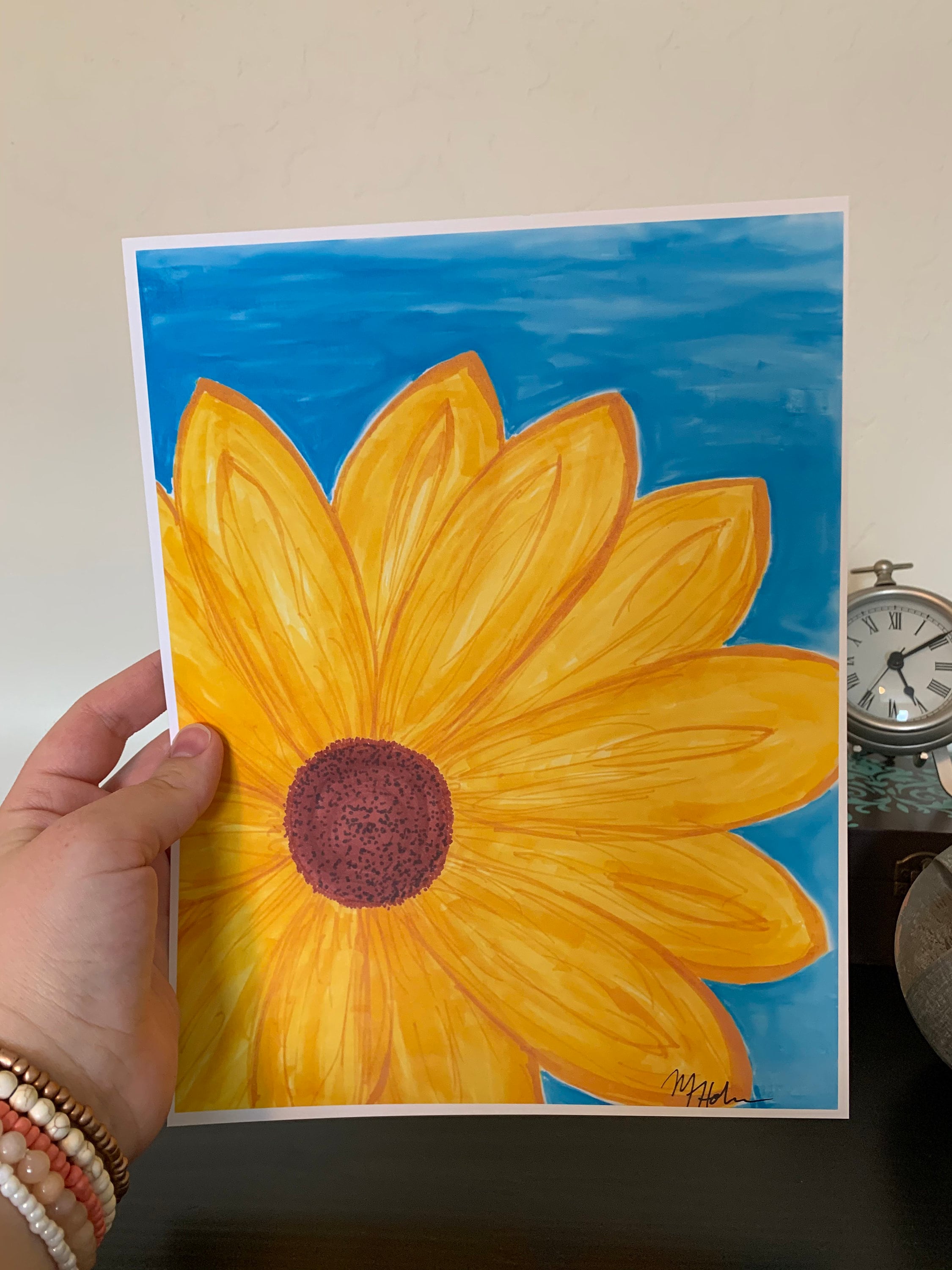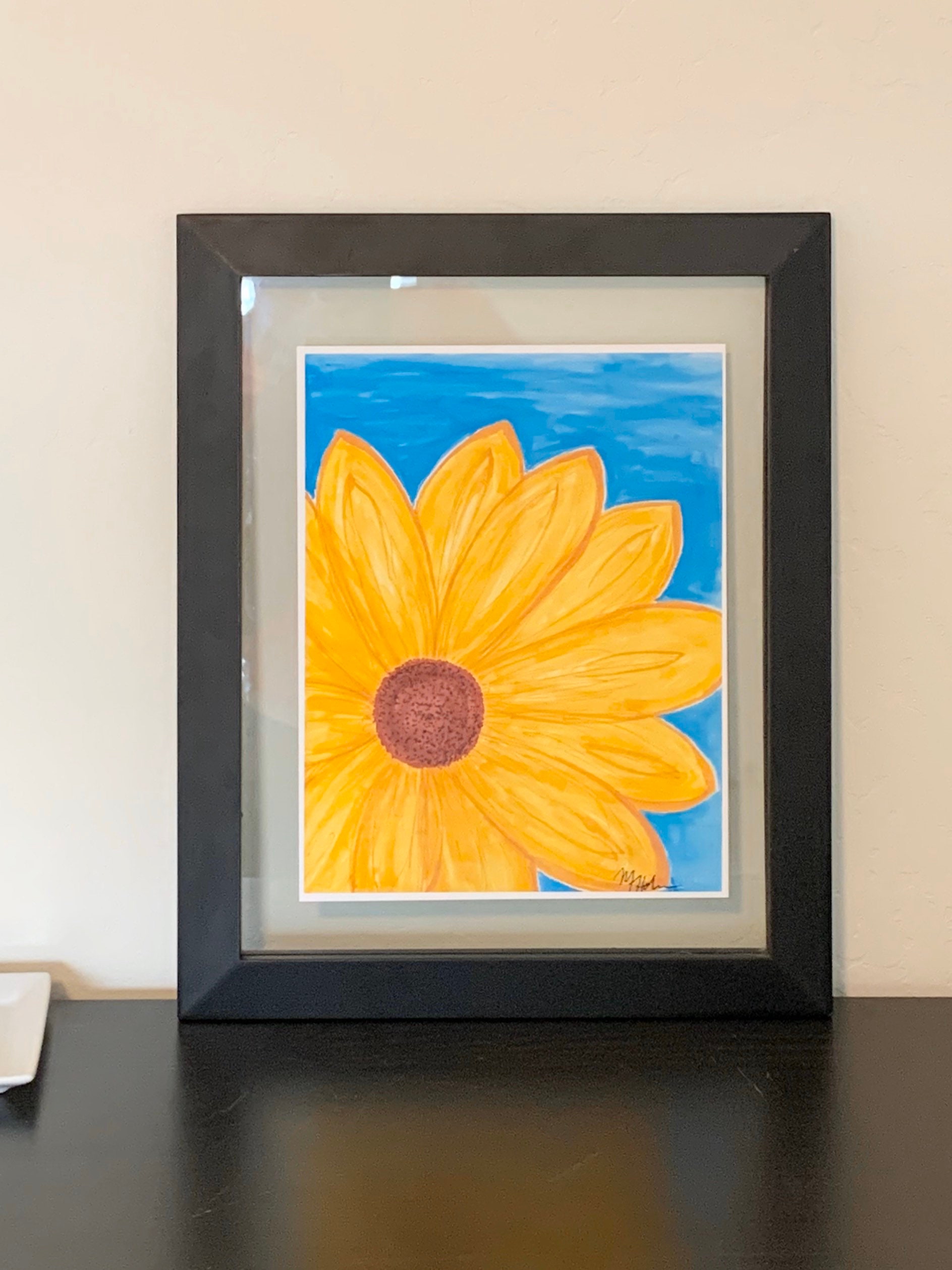Sunflower Art Printable Digital Download, Wall Art Home Decor Sunflower Daisy Flower, Yellow Blue, Marker Drawing Painting, Simple 8x10 9x11
