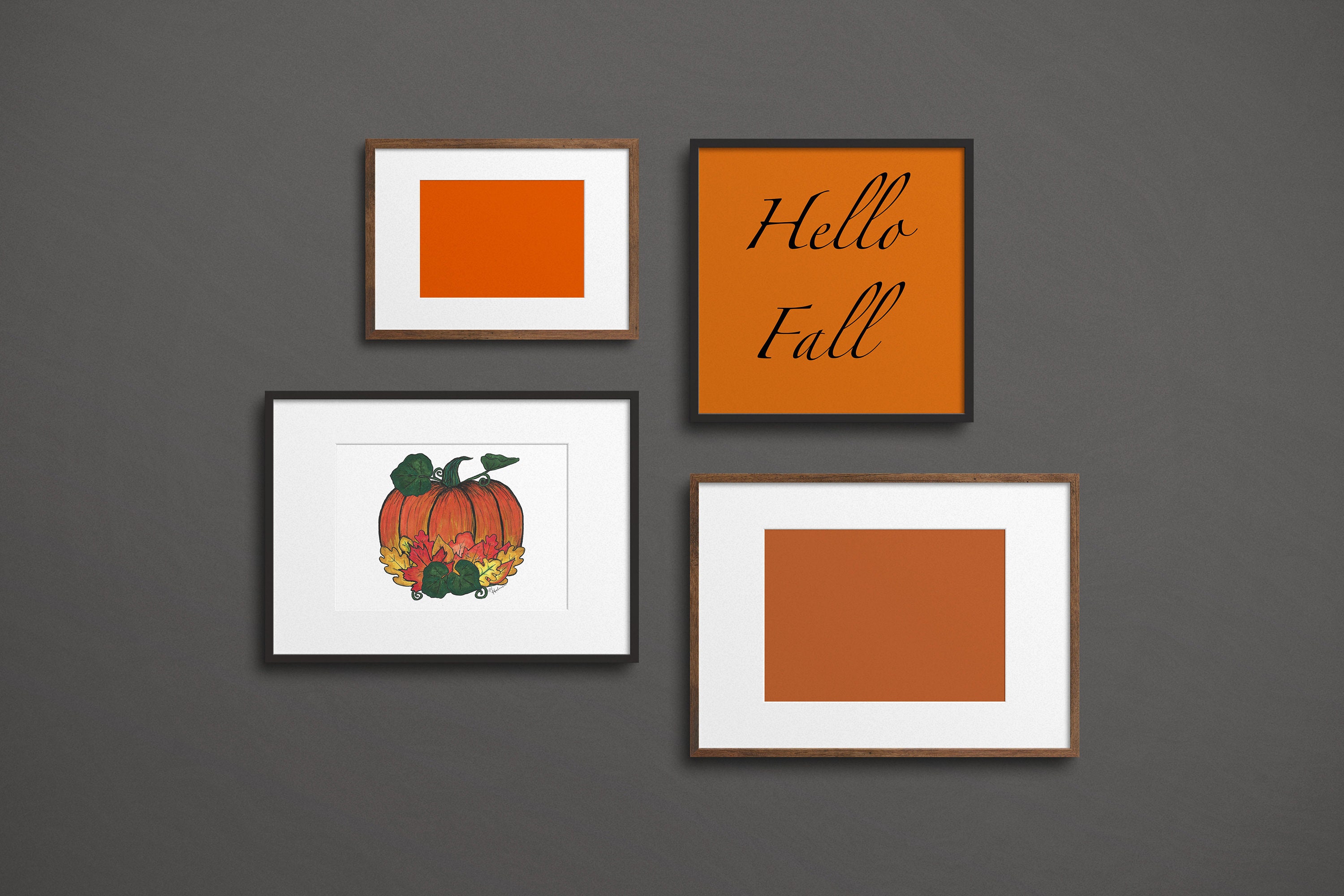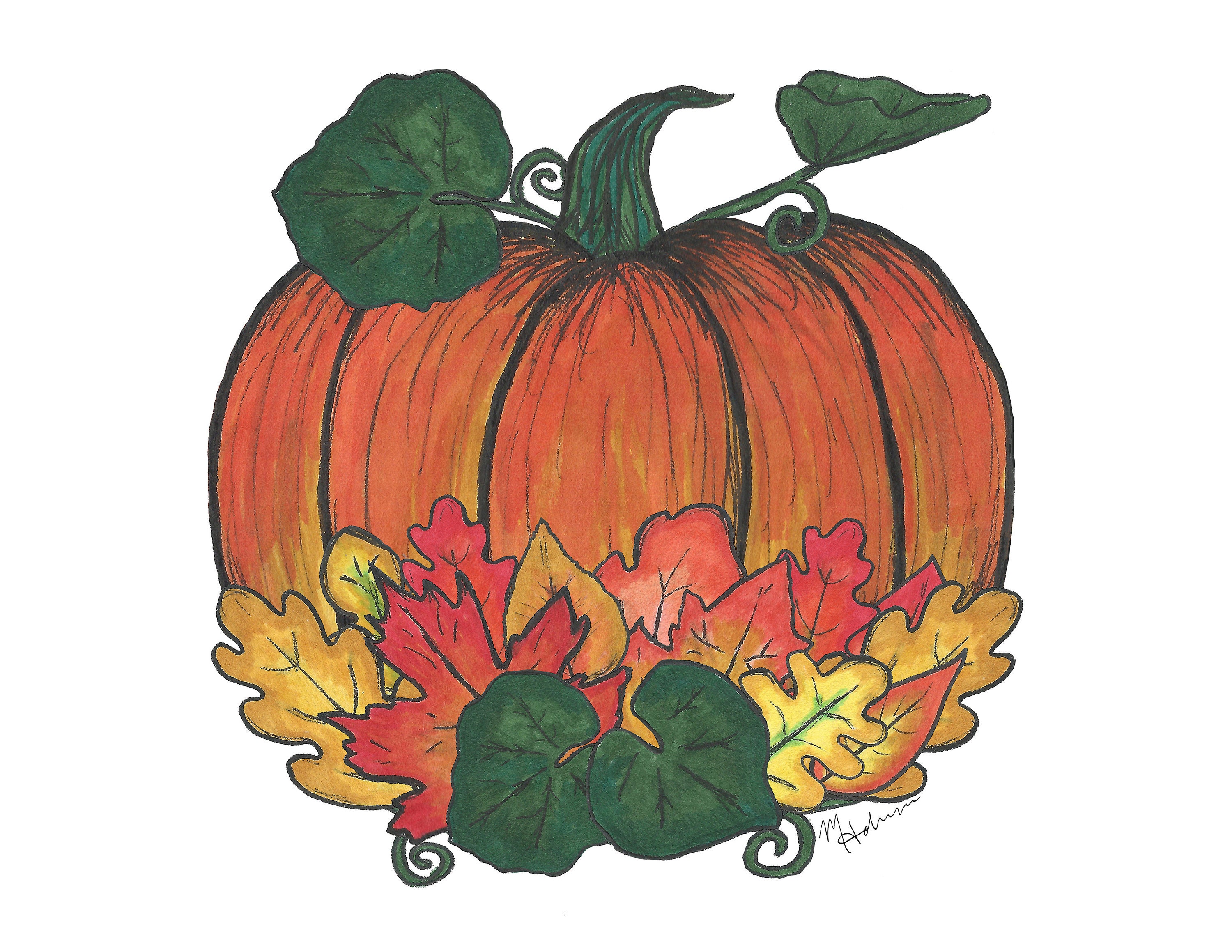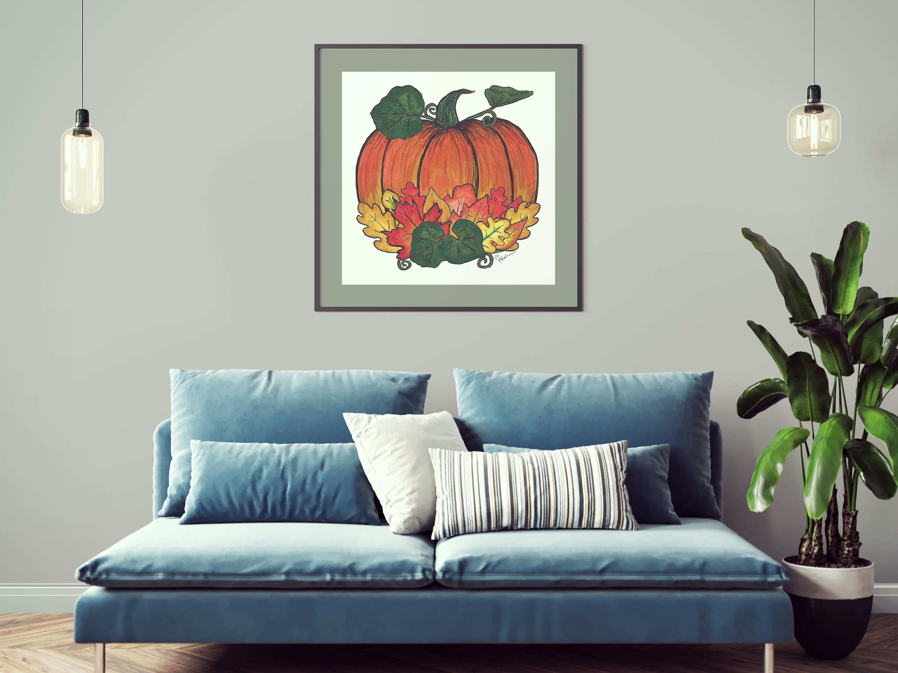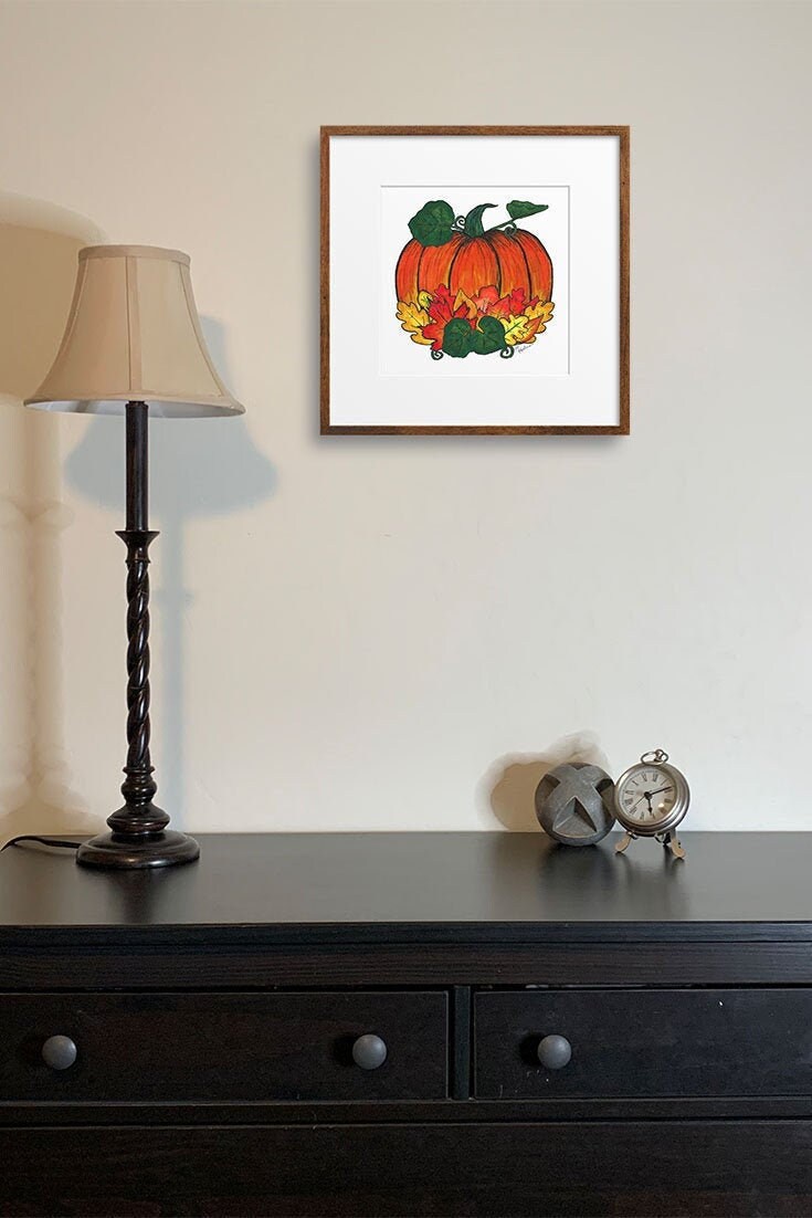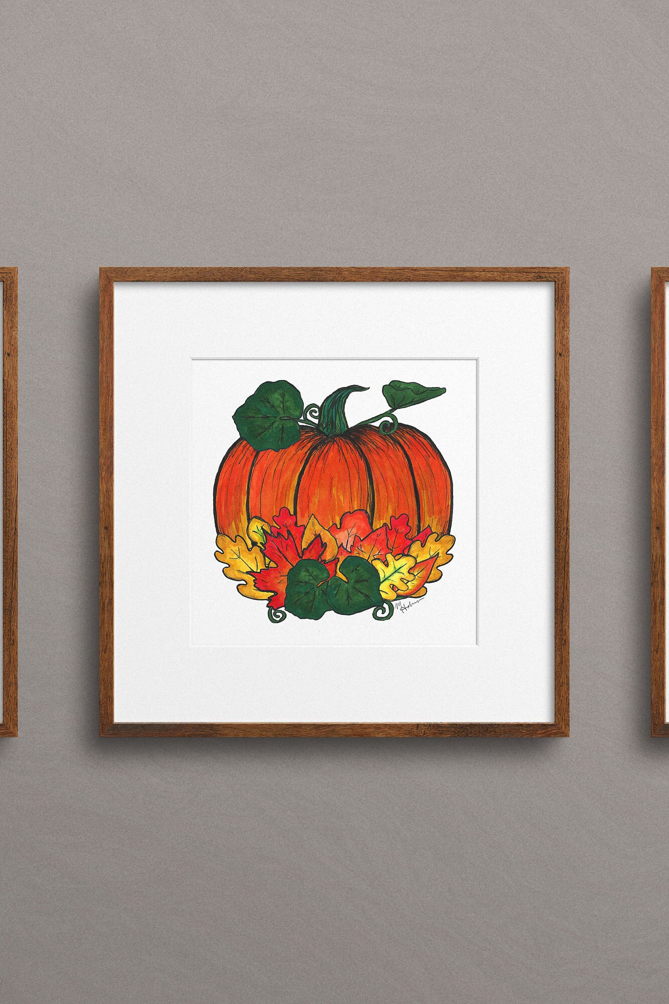 Fall Pumpkin Digital Download Art Printable Wall Art Home Decor Pumpkin Leaves Orange Red Yellow Autumn Thanksgiving Halloween Drawing
