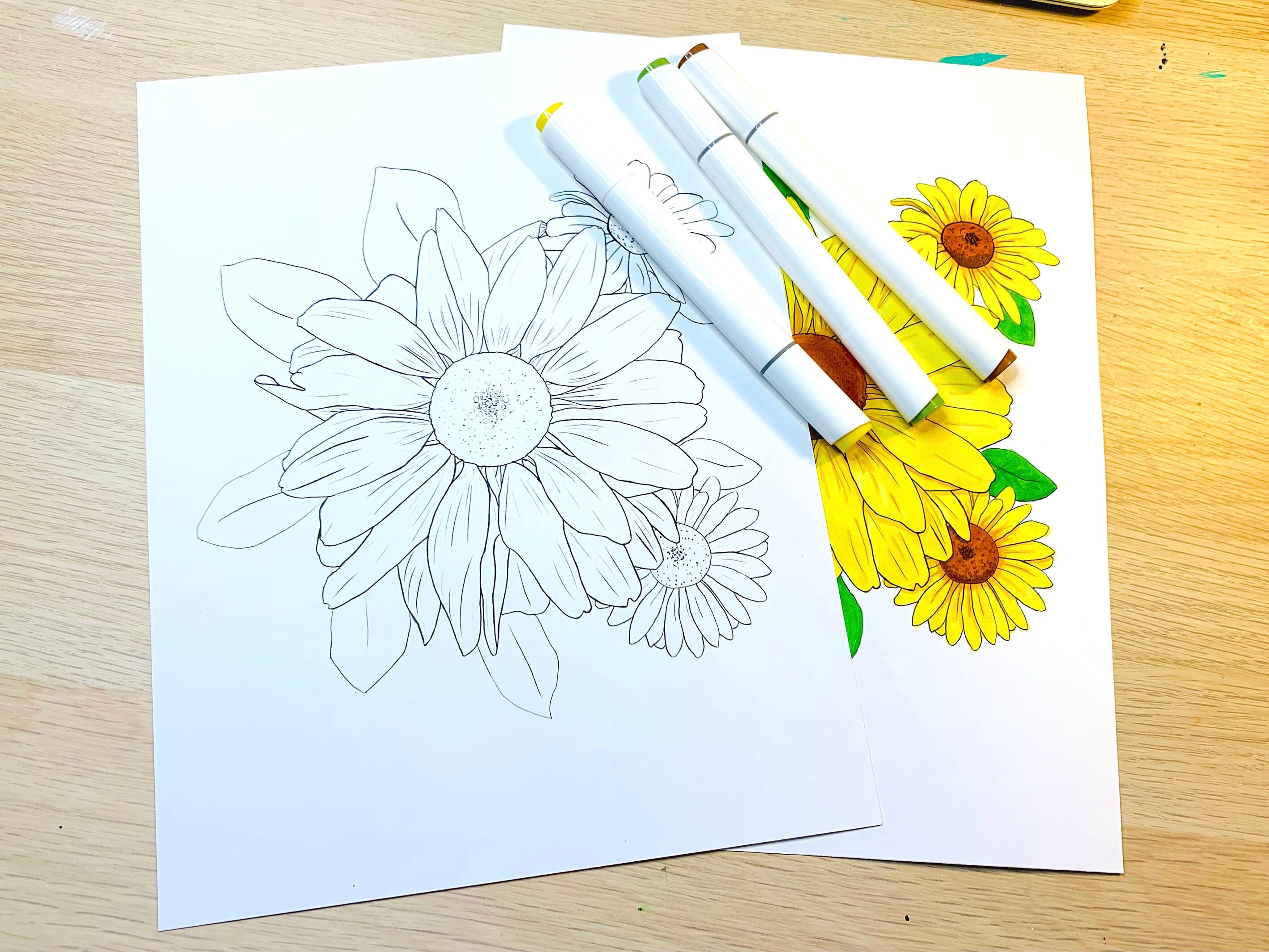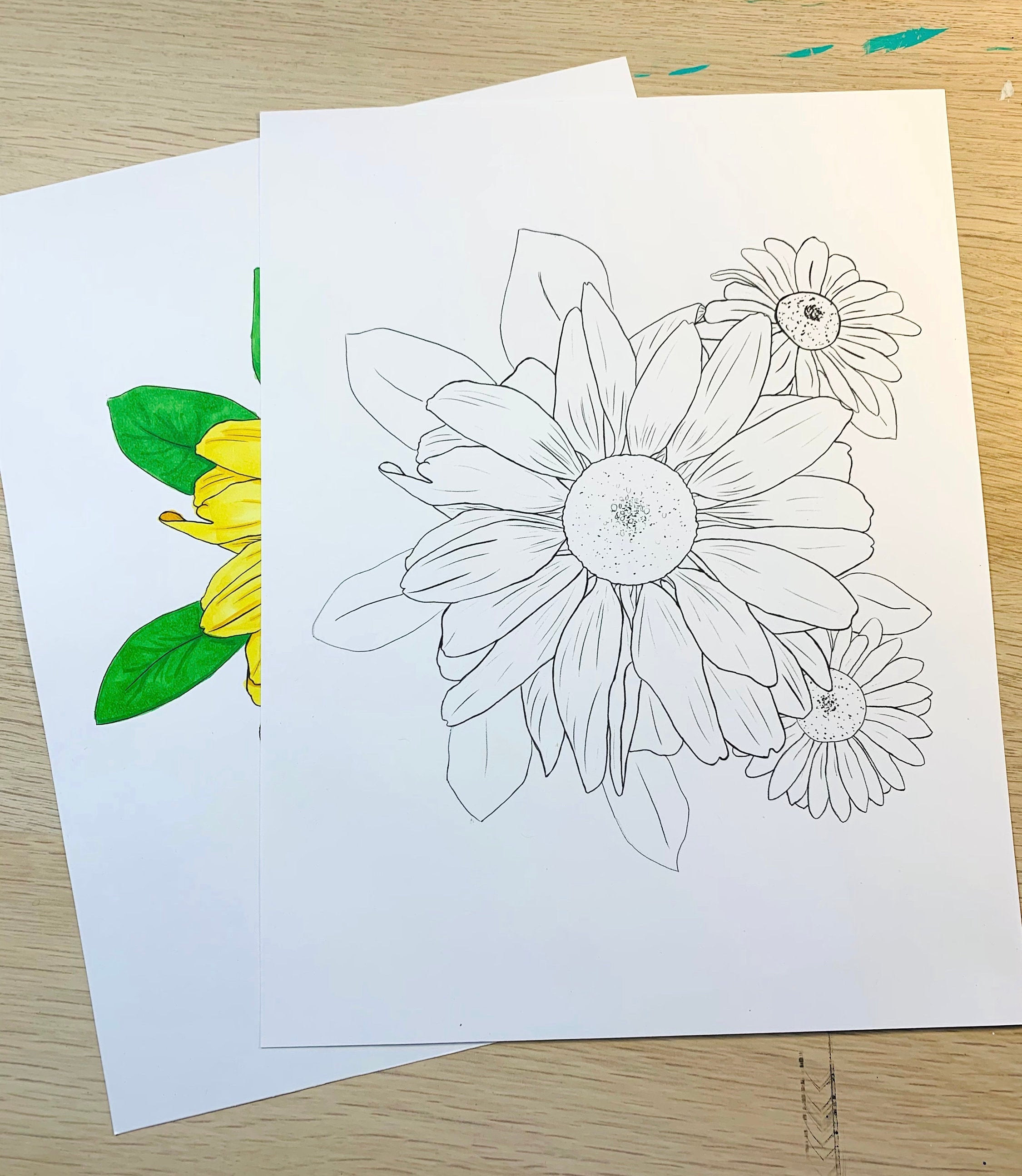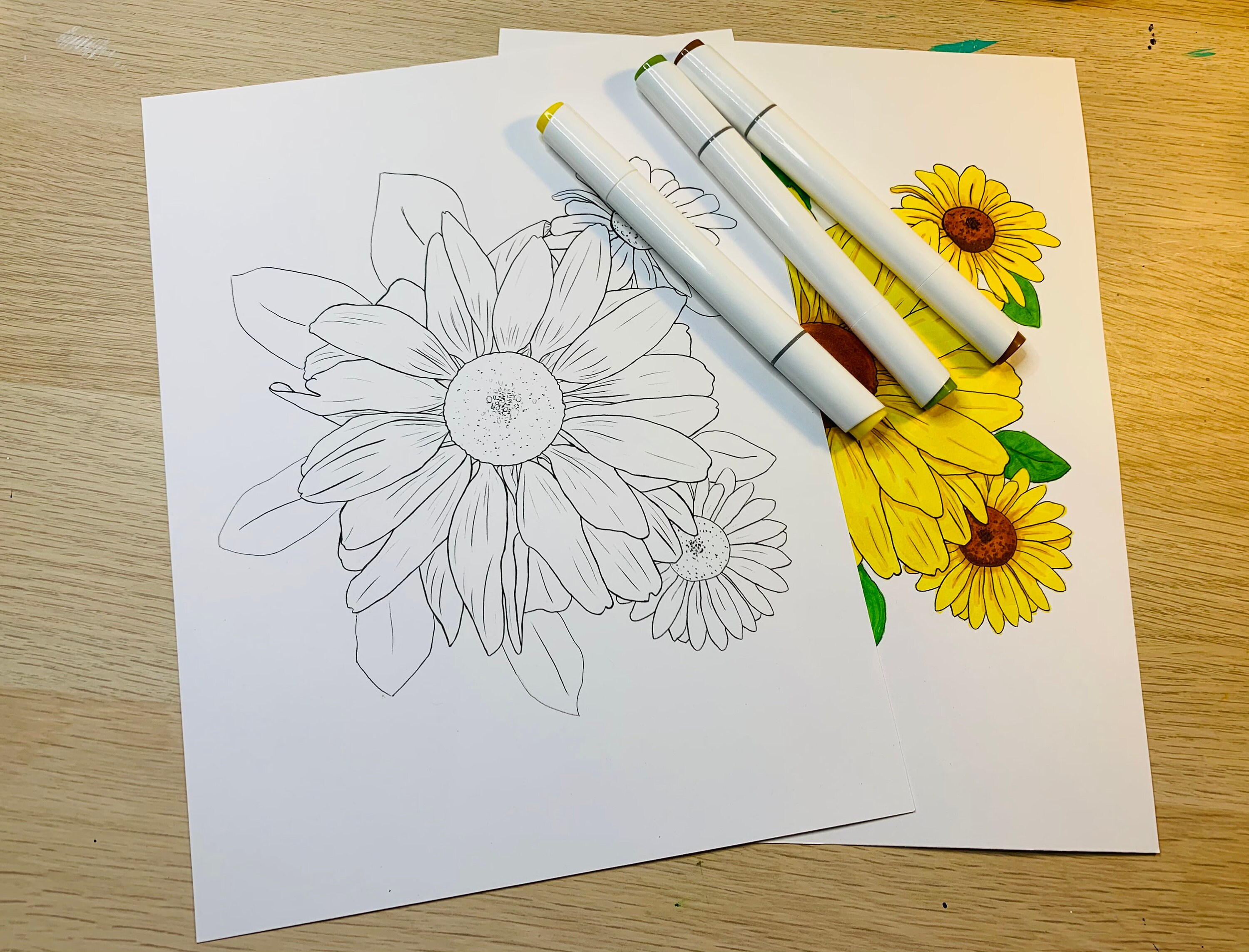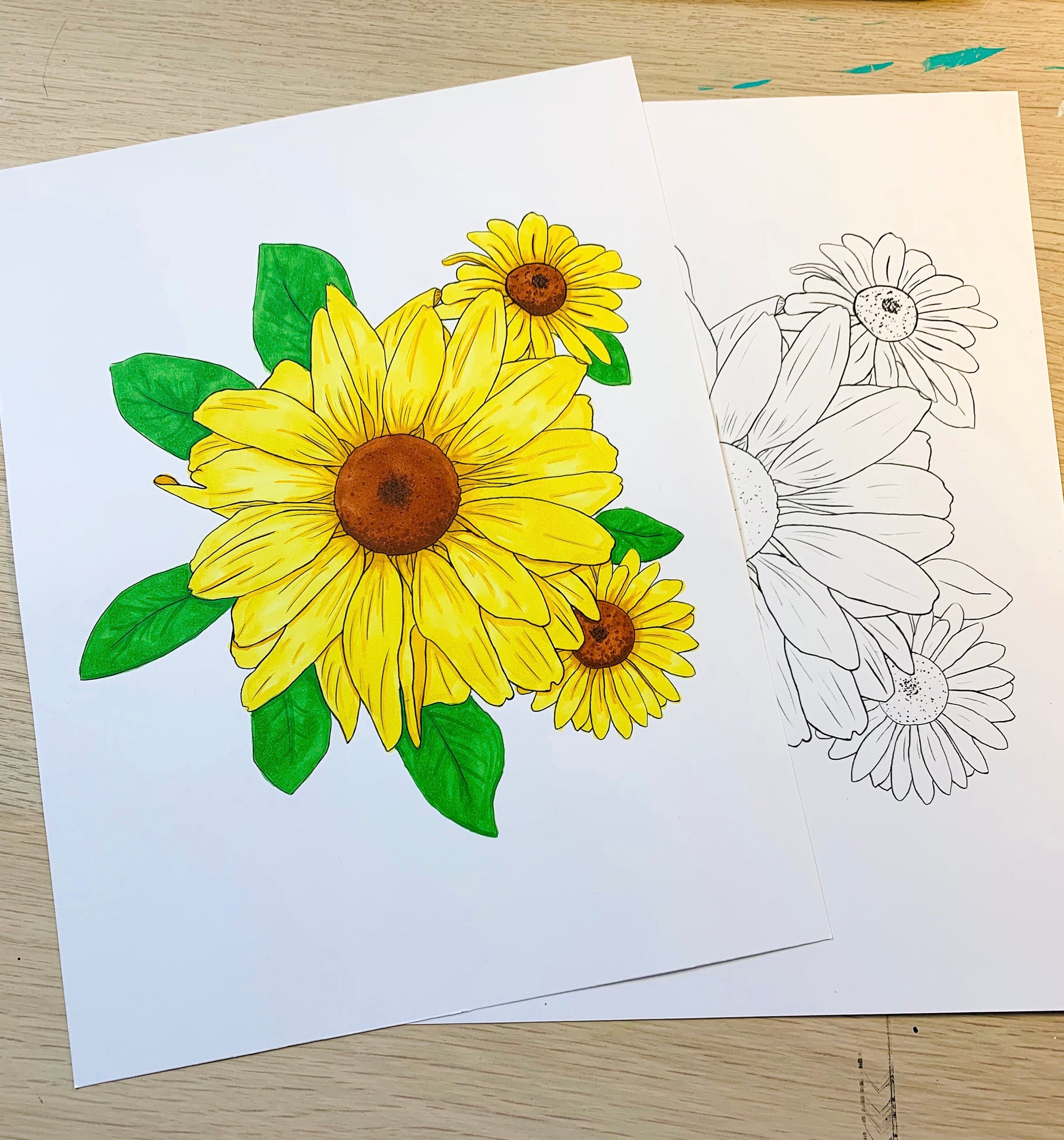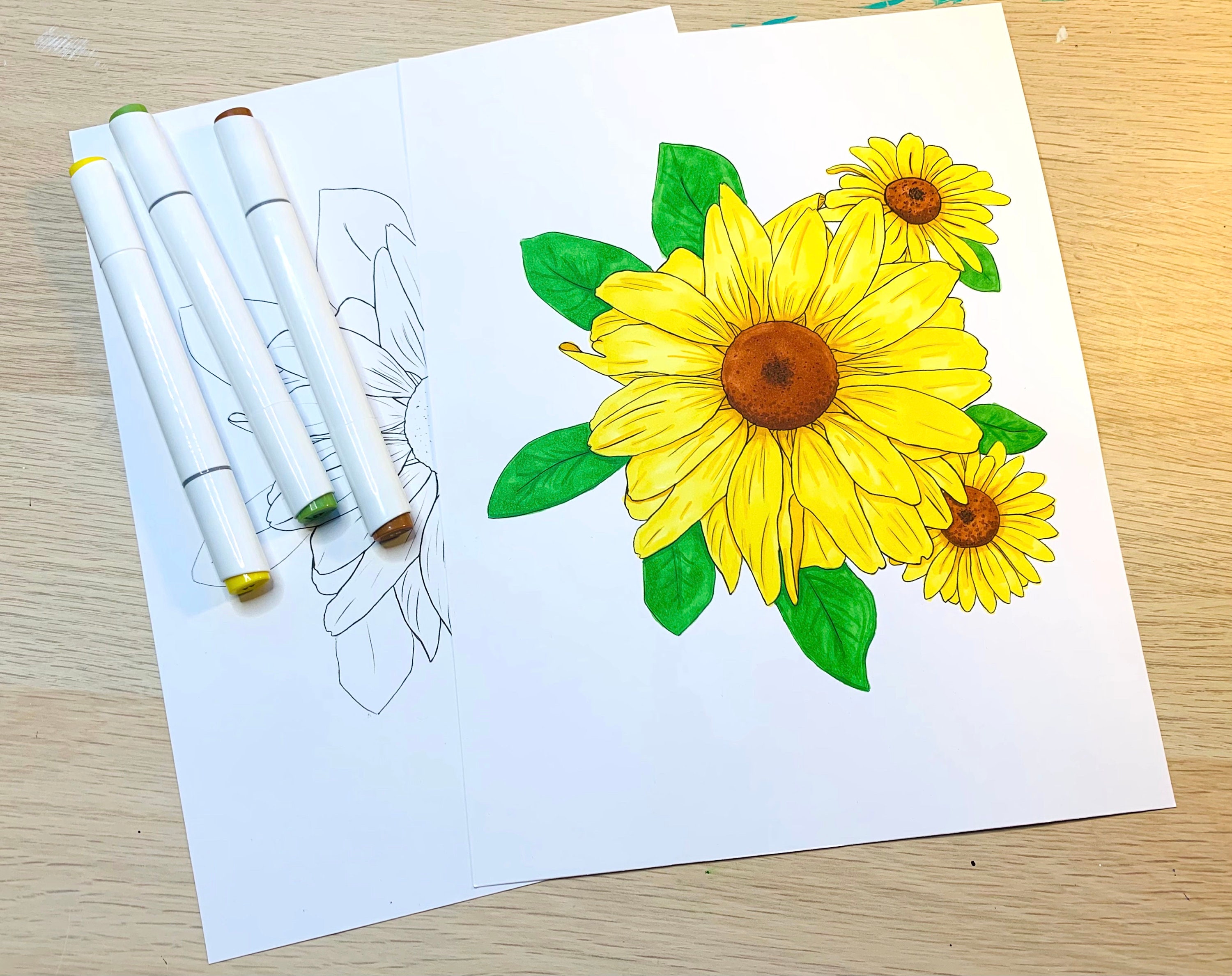 Flower Coloring Page Daisy Sunflower PDF or JPG digital download